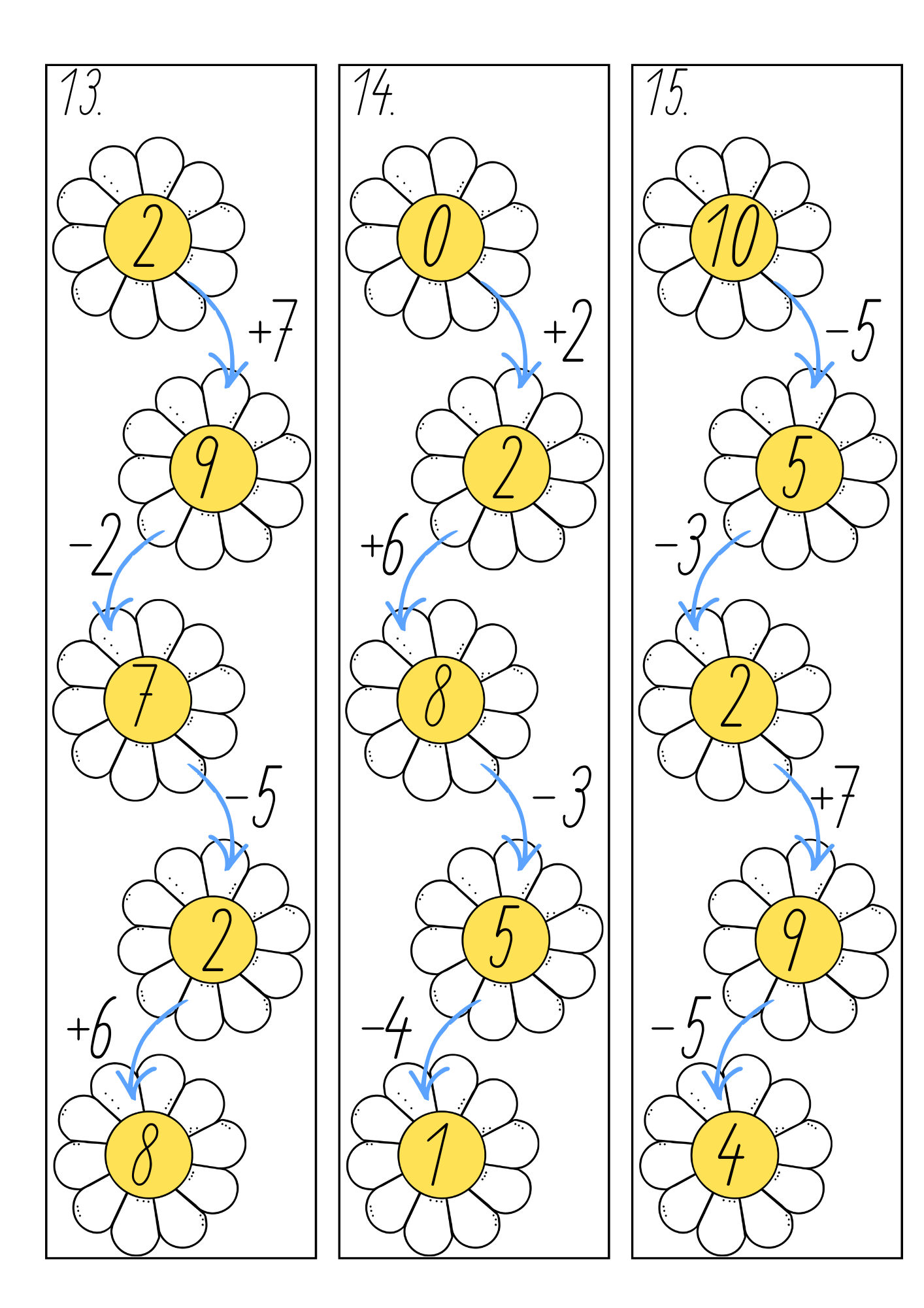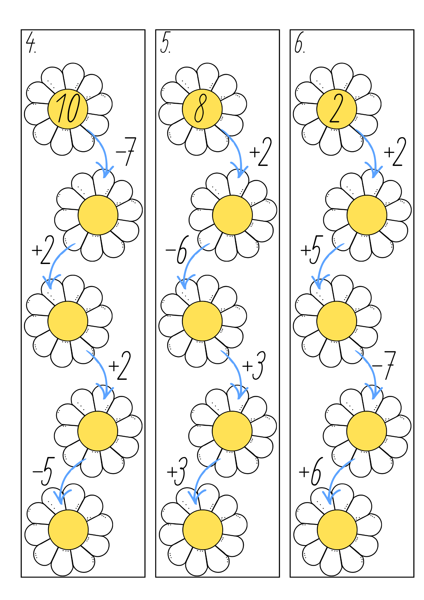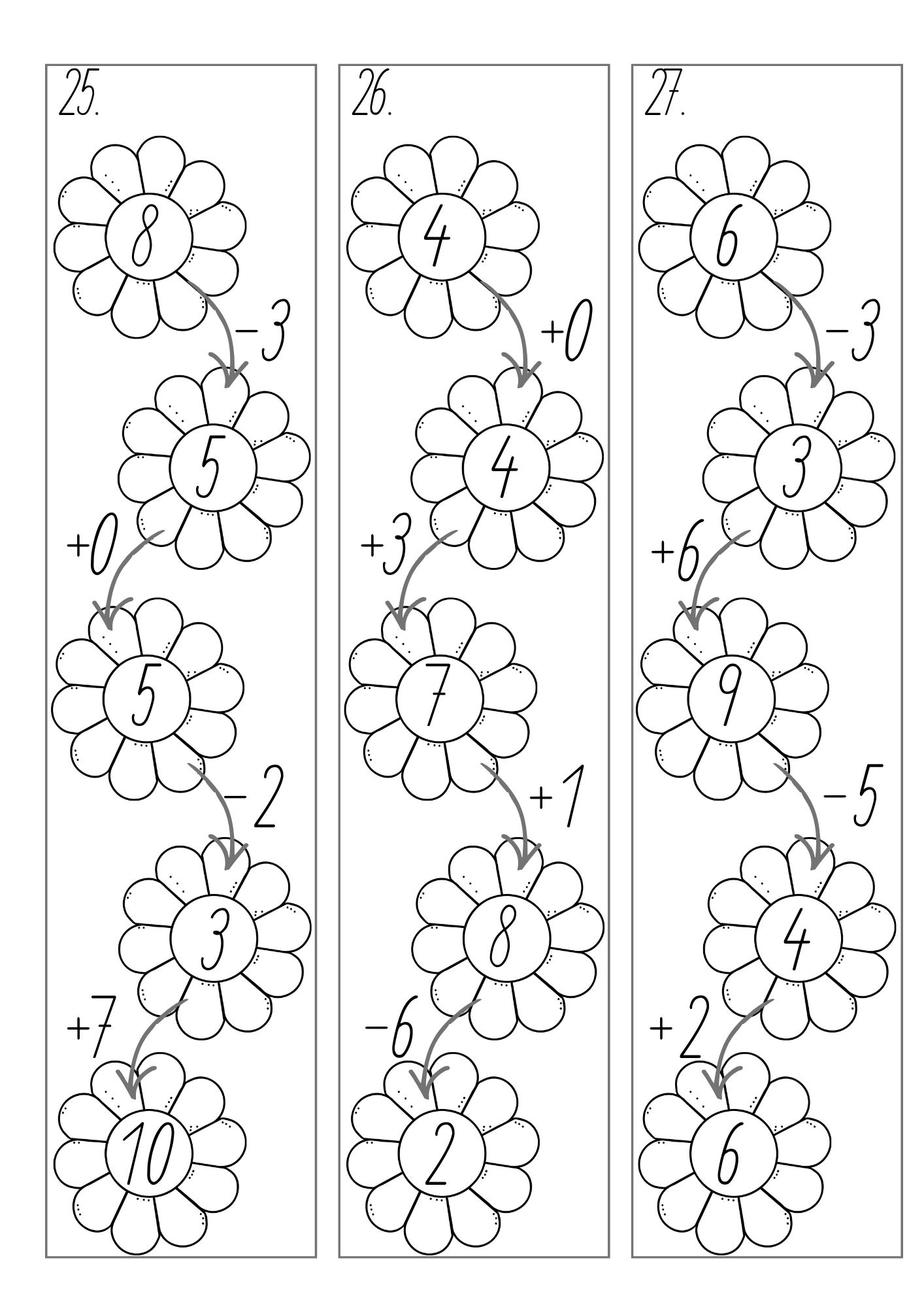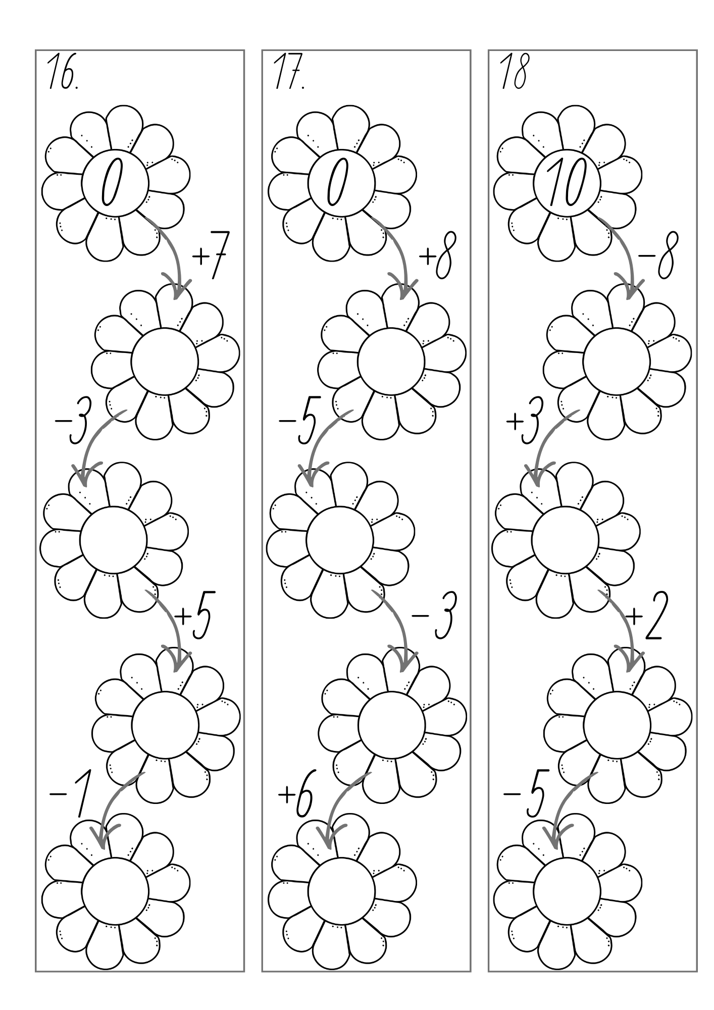 - 30 kartiček s řetězovými příklady (sčítání a odčítání do 10)