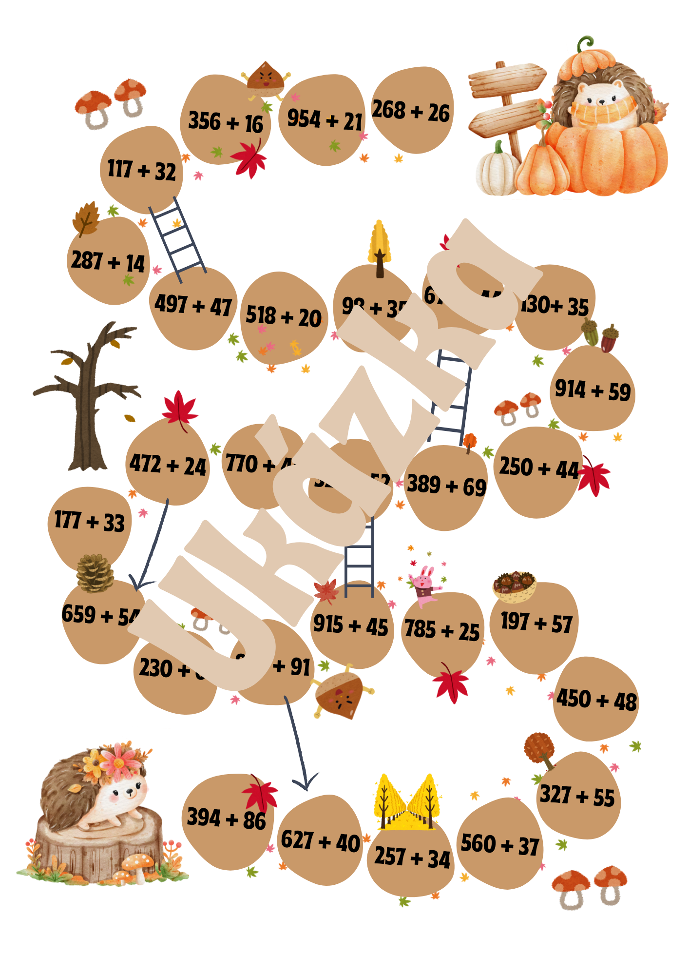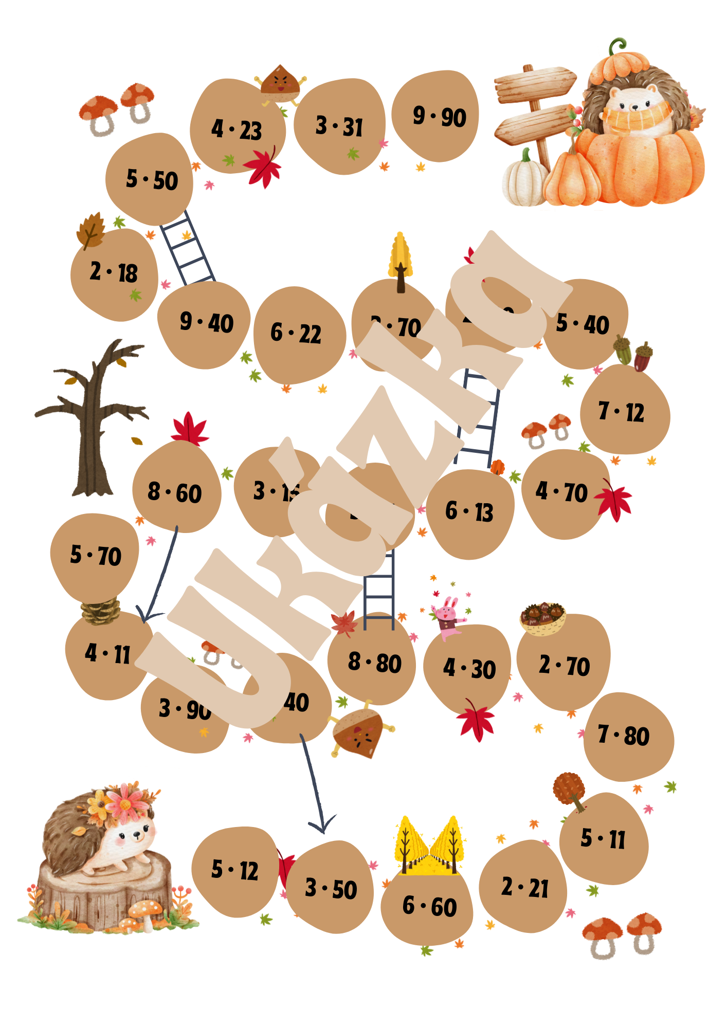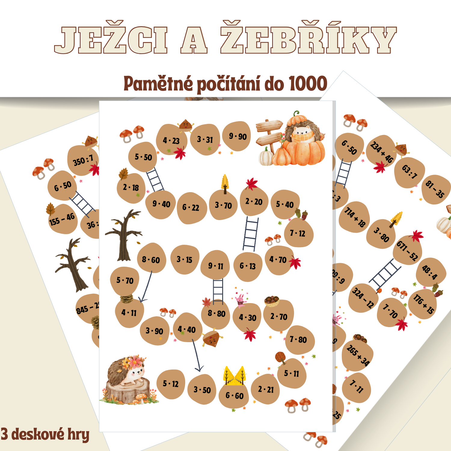 Materiál obsahuje 3 deskové hry s podzimní tematikou zaměřené na pamětné sčítání, odčítání, násobení a dělení.