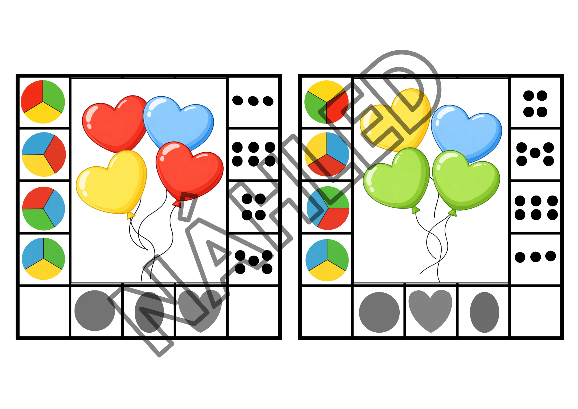 Materiál je vhodný pro děti předškolního věku, karty s balónky i pro 1., 2. třídu ZŠ.