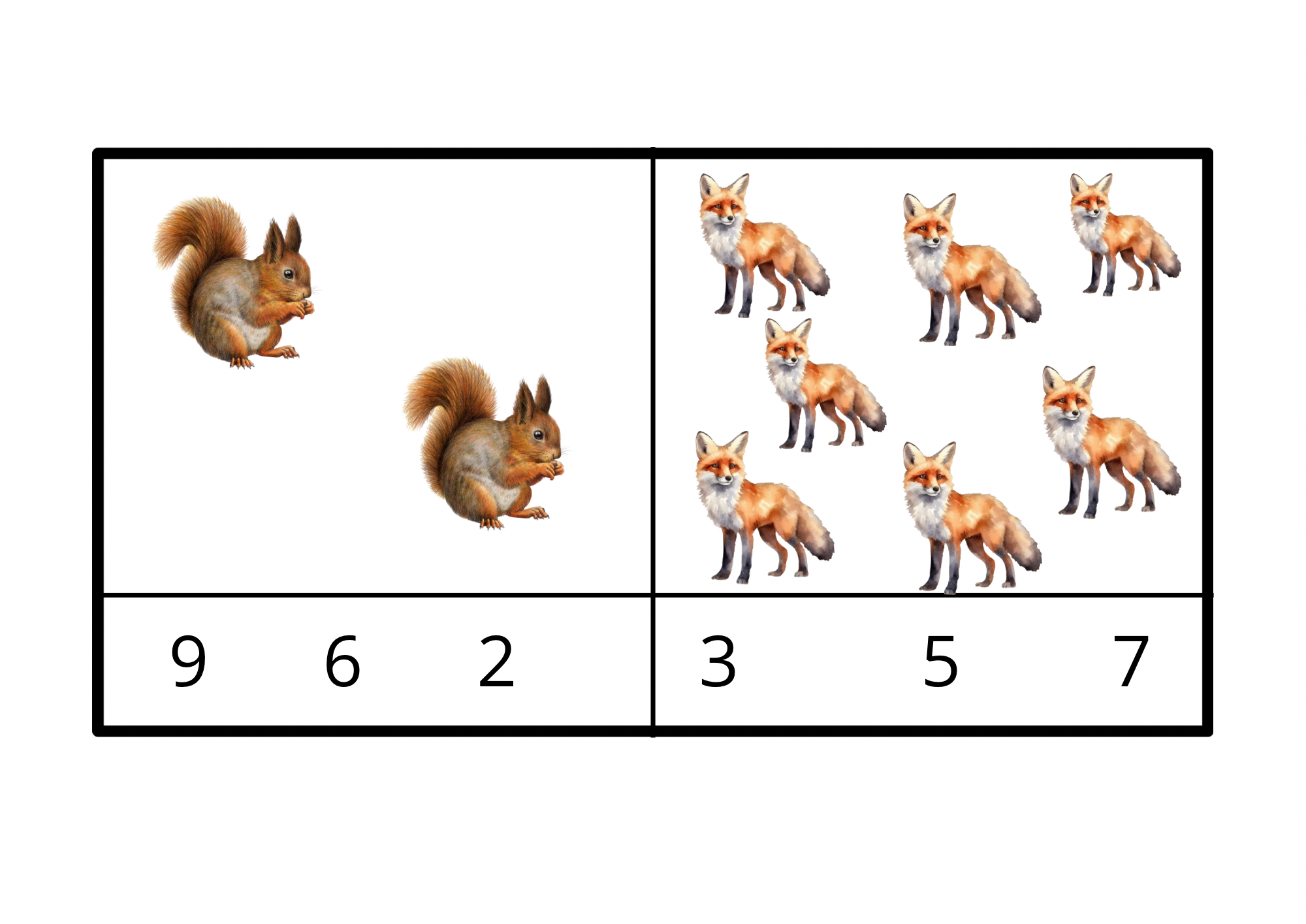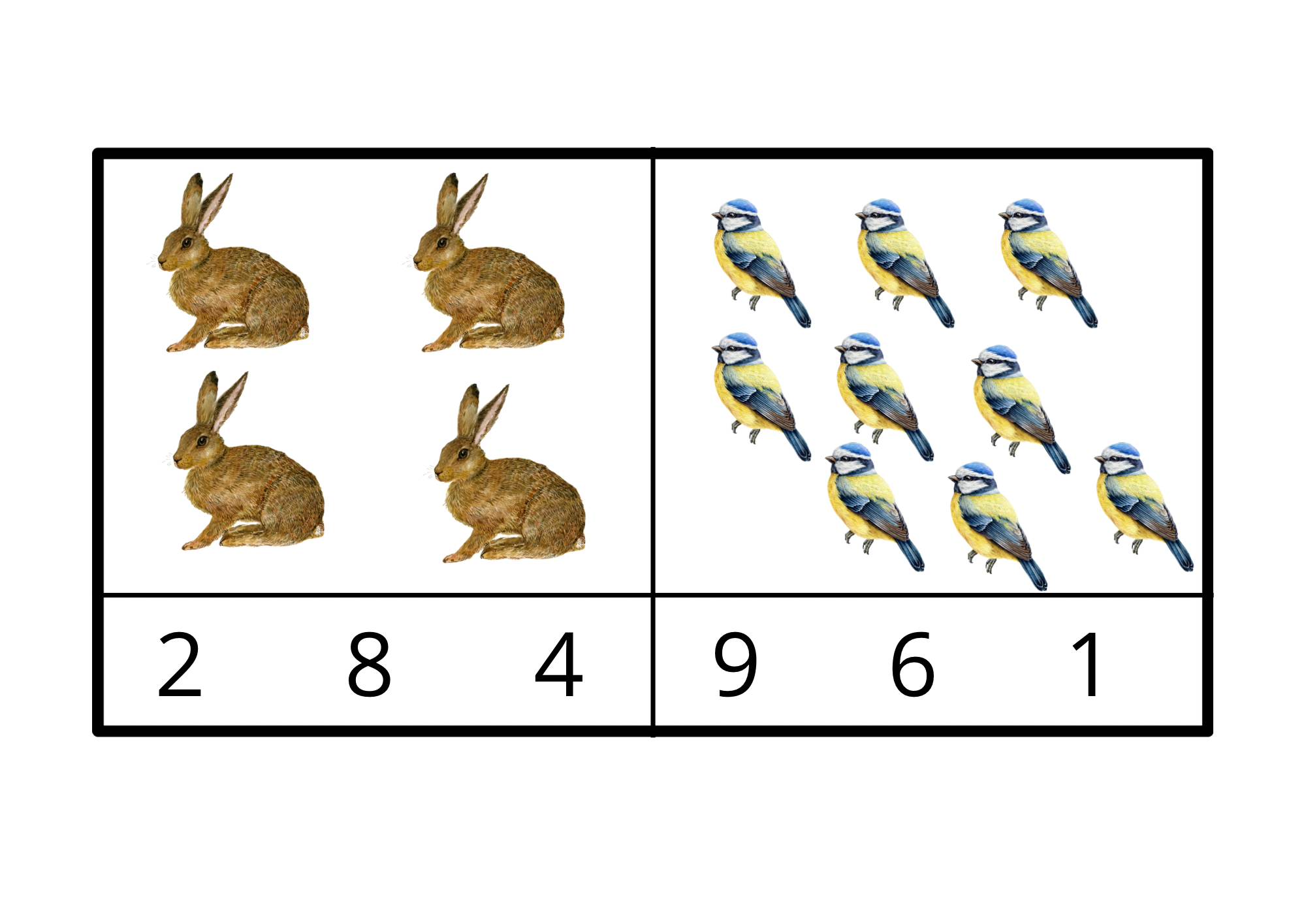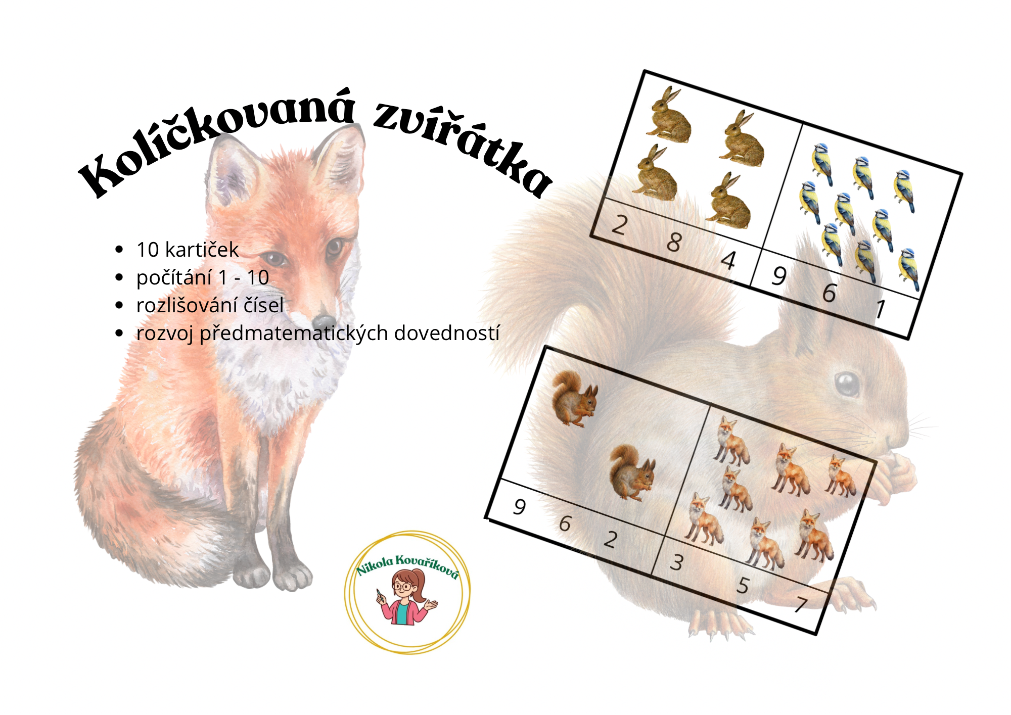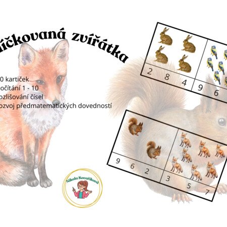 Soubor obsahuje 10 karet s tematikou Zvířátek na procvičení předmatematických dovedností a to konkrétně počítání 1-10.