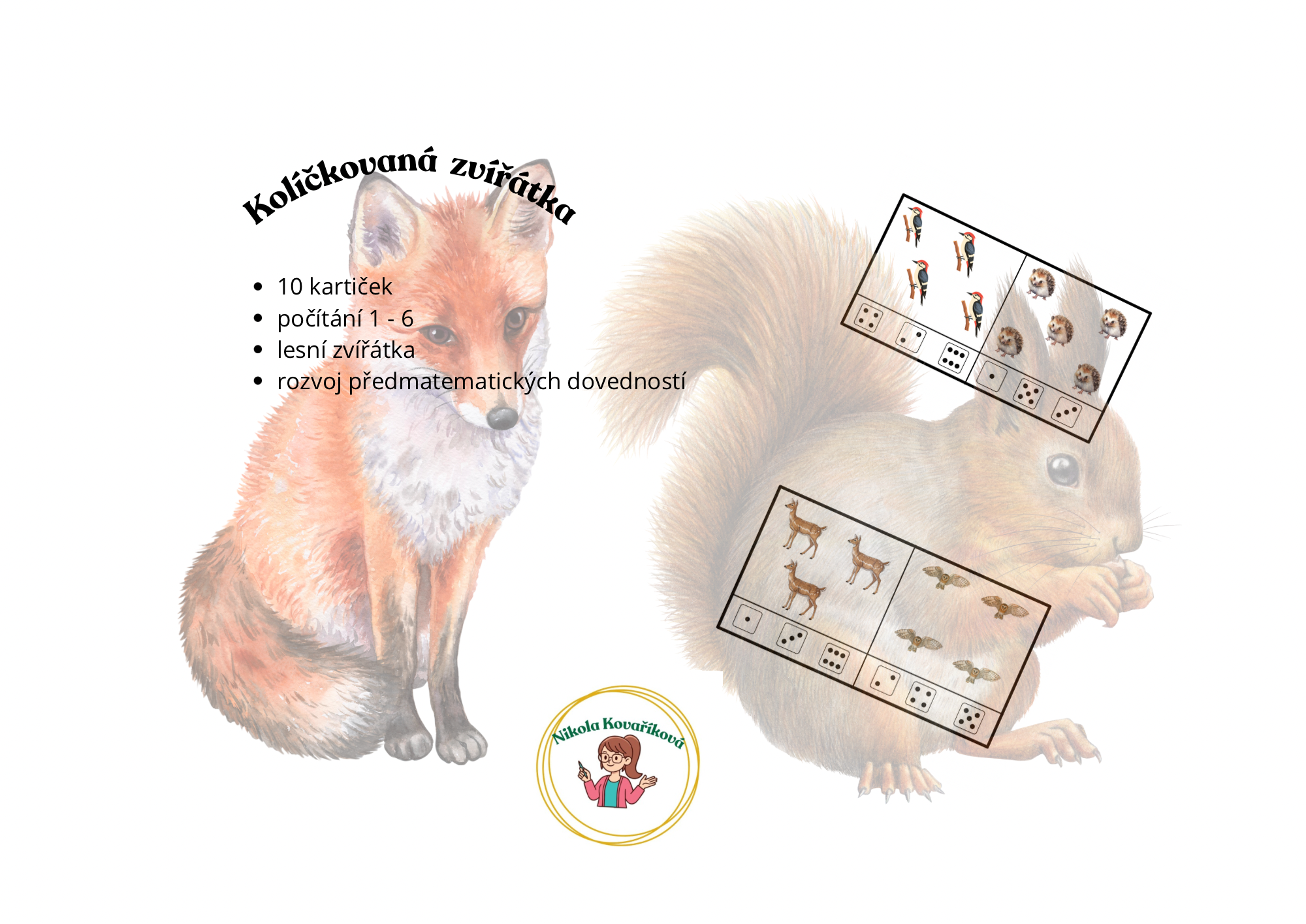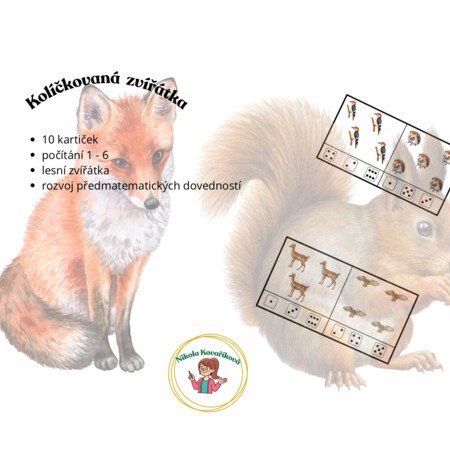 Soubor obsahuje 10 karet s tematikou Lesní zvířátka na procvičení předmatematických dovedností a to konkrétně počítání 1-6.
