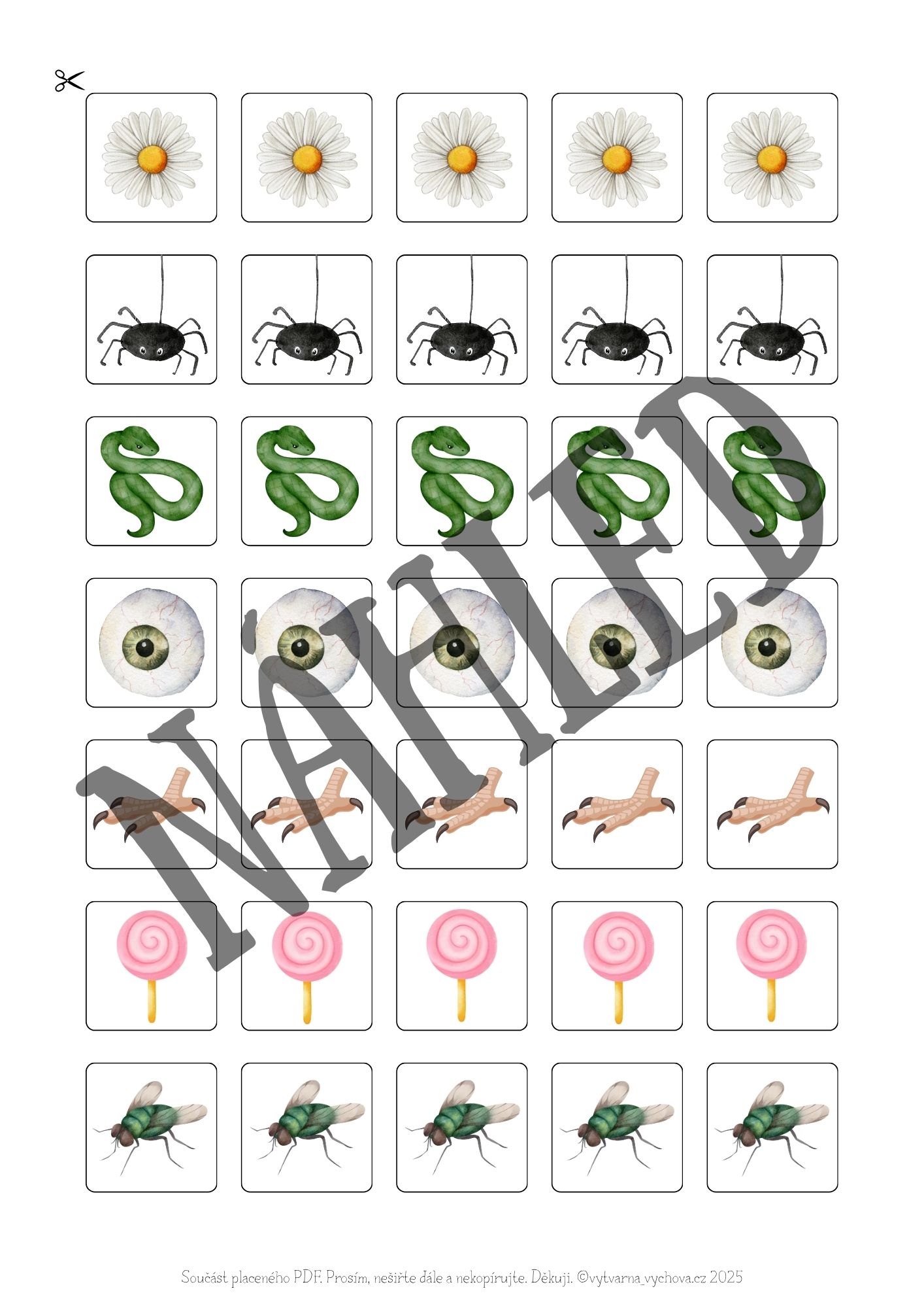 - Pokud chcete, aby na úkolu mohlo pracovat více dětí, vytiskněte kolík vícekrát, stejně tak i jednotlivé kartičky s malými obrázky (ty mohou být v menším množství kopií).