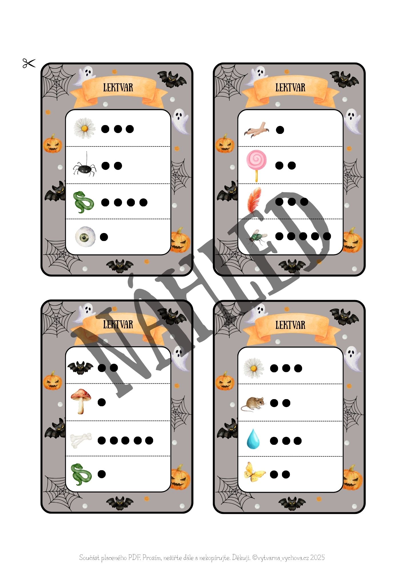- Soubor si vytiskněte, zalaminujte, vystřihněte kotlík, kartičky s lektvary a jednotlivé kartičky.