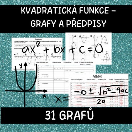 - Druhá strana obsahuje tabulku s danými předpisy nebo body kvadratické funkce, do které žáci doplňují chybějící údaje.