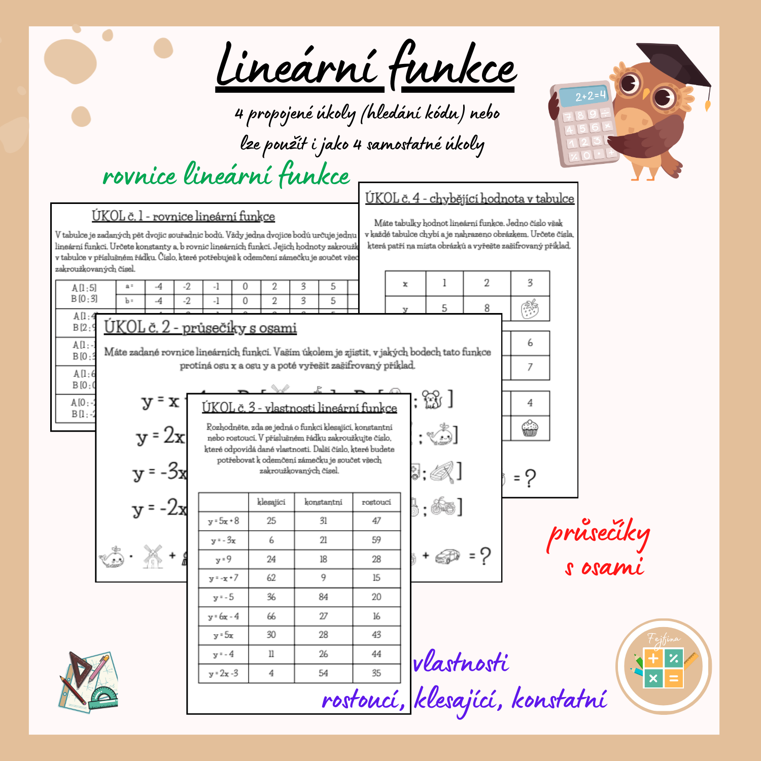 1) žáci vyřeší všechny 4 úkoly - z každého úkolu získají jedno číslo