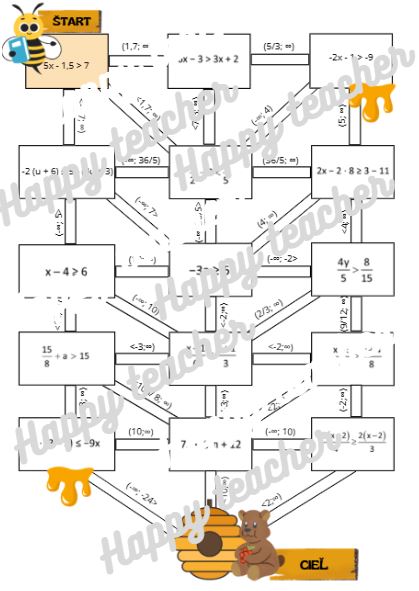 Projděte labyrintem nerovnic od startu až do cíle. Správně vyřešené úlohy vás zavedou správnou cestou. Pokud uděláte chybu, nedostanete se po správné cestě do cíle.