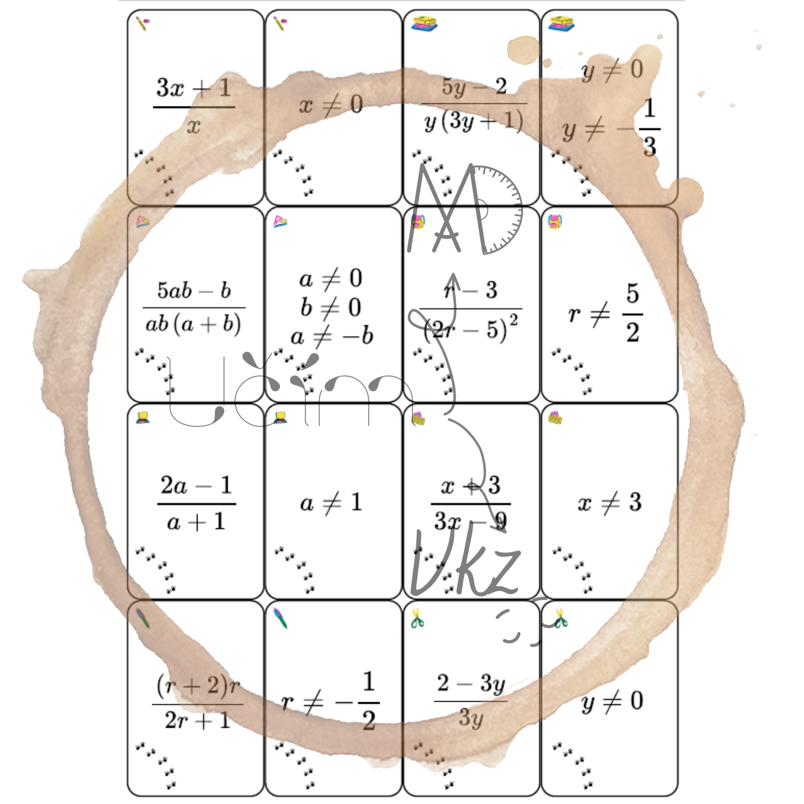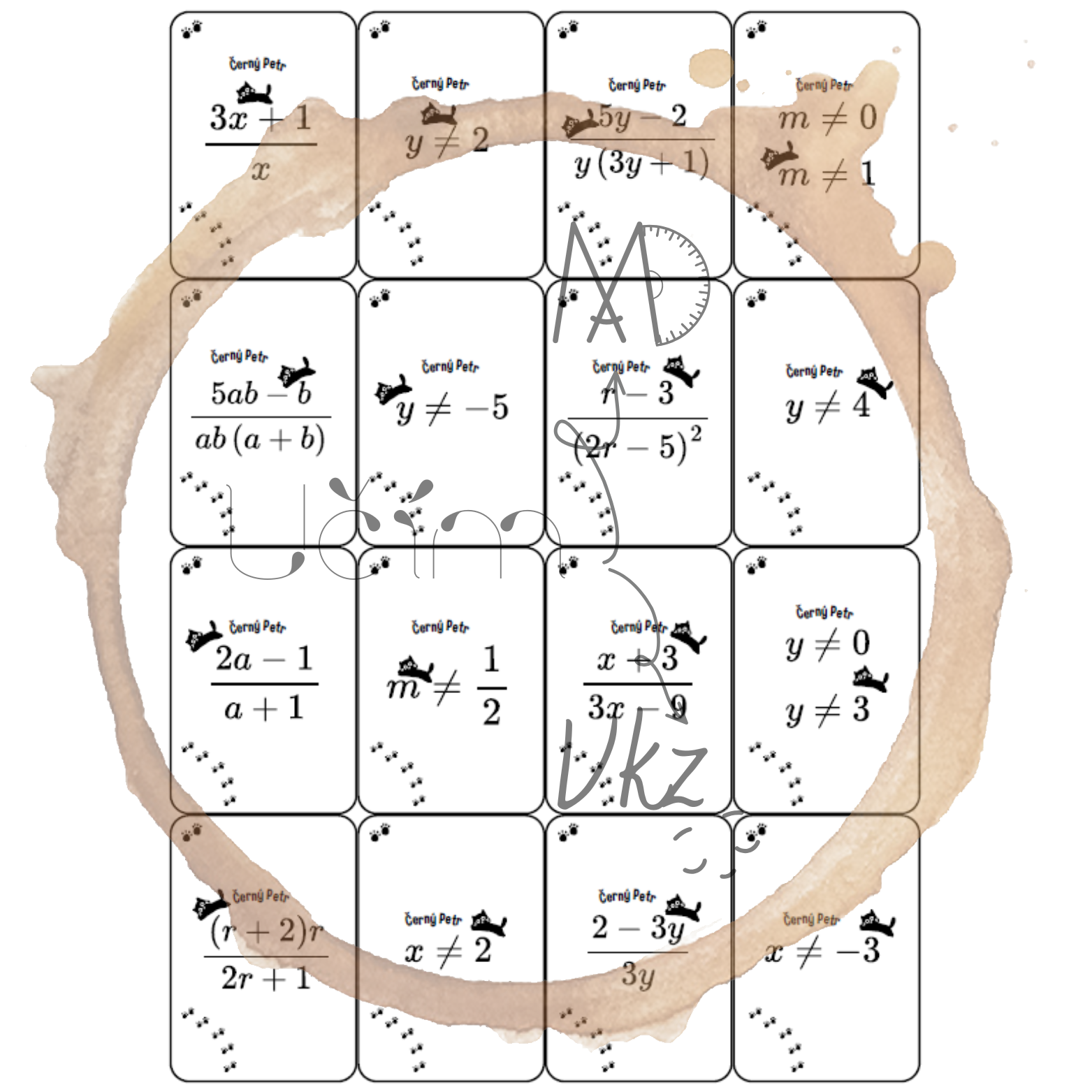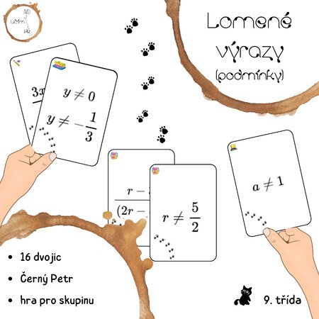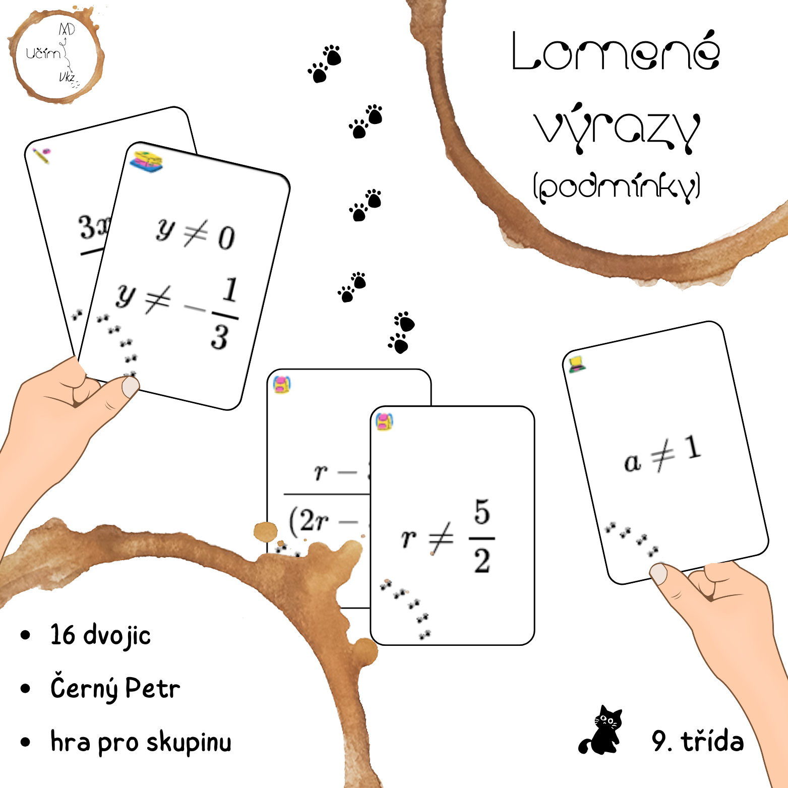 Materiál je primárně pro žáky 9. ročníku ZŠ a slouží k zábavnému procvičení určování pomínek lomených výrazů formou karetní hry Černý Petr.