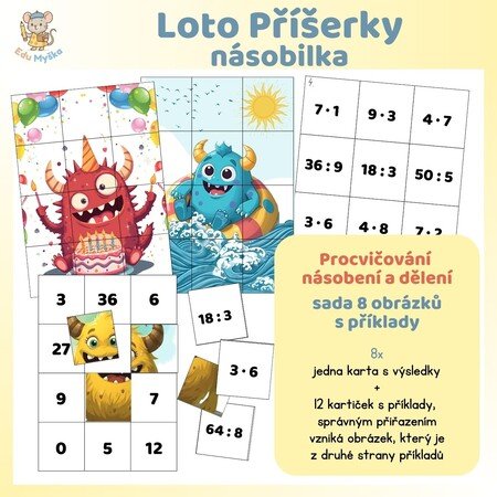 Tento soubor obsahuje osm sad na procvičování násobilky, při kterých si žáci poskládají obrázek.