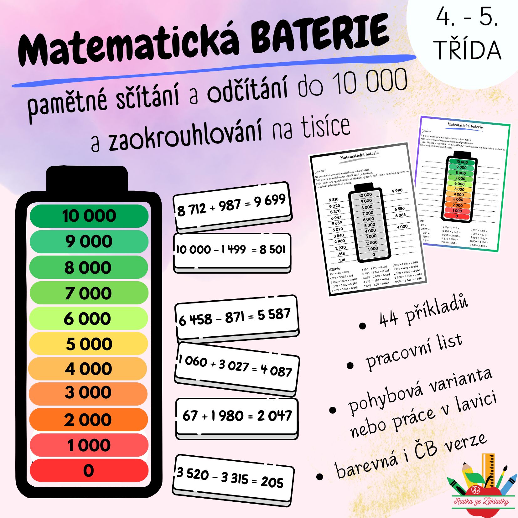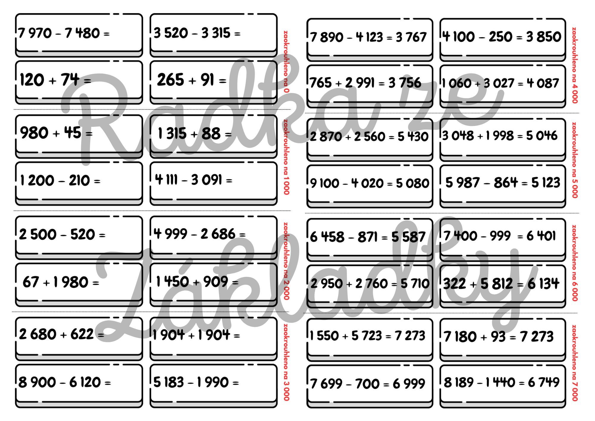 - 44 příkladů k pamětnému počítání se zpětnou kontrolou (výsledek na zadní straně kartičky),