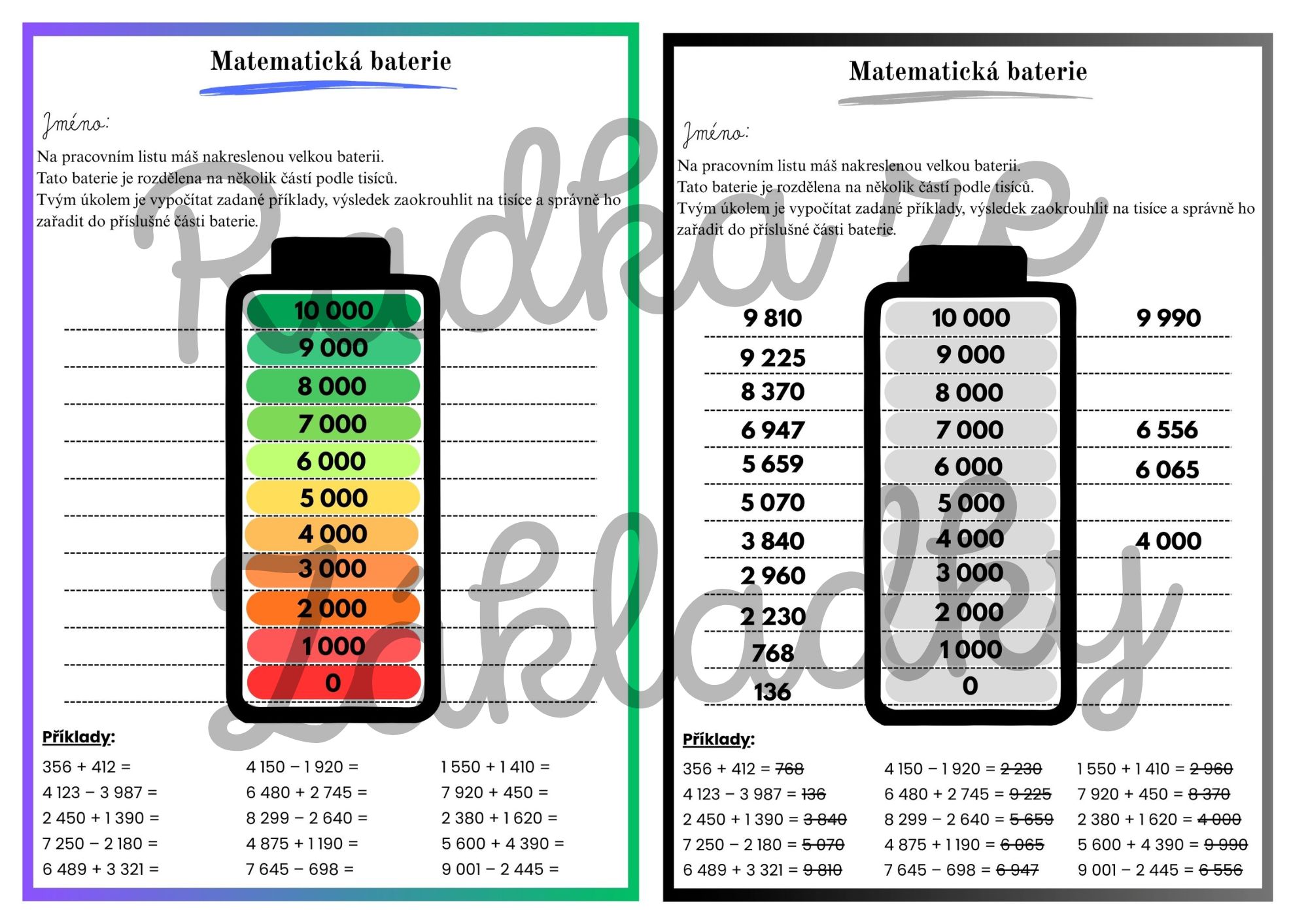 - Následně výsledek zaokrouhlí na tisíce a přiřadí ho do správné části baterie.