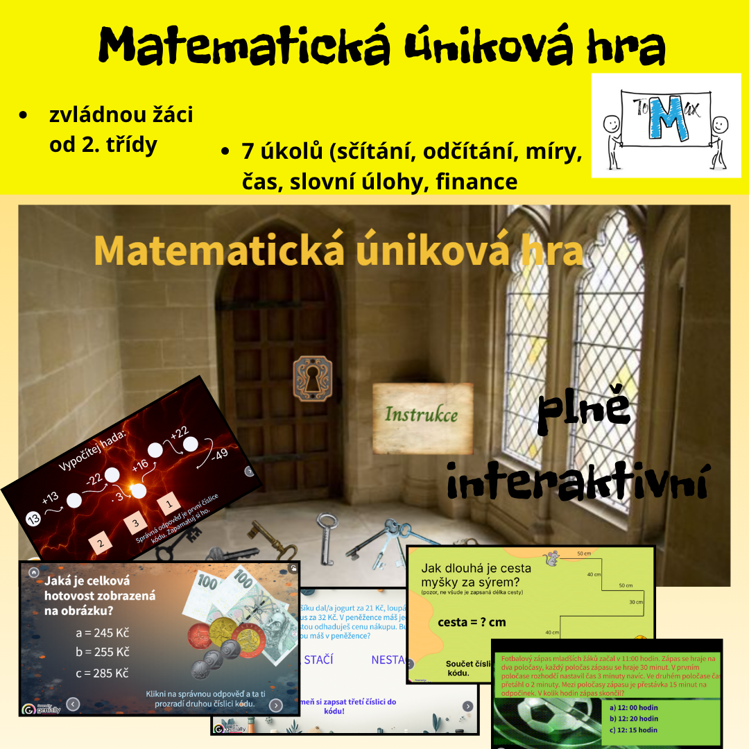 Tato matematická úniková hra je interaktivní aktivita určená k zopakování učiva 2. - 3. ročníku.