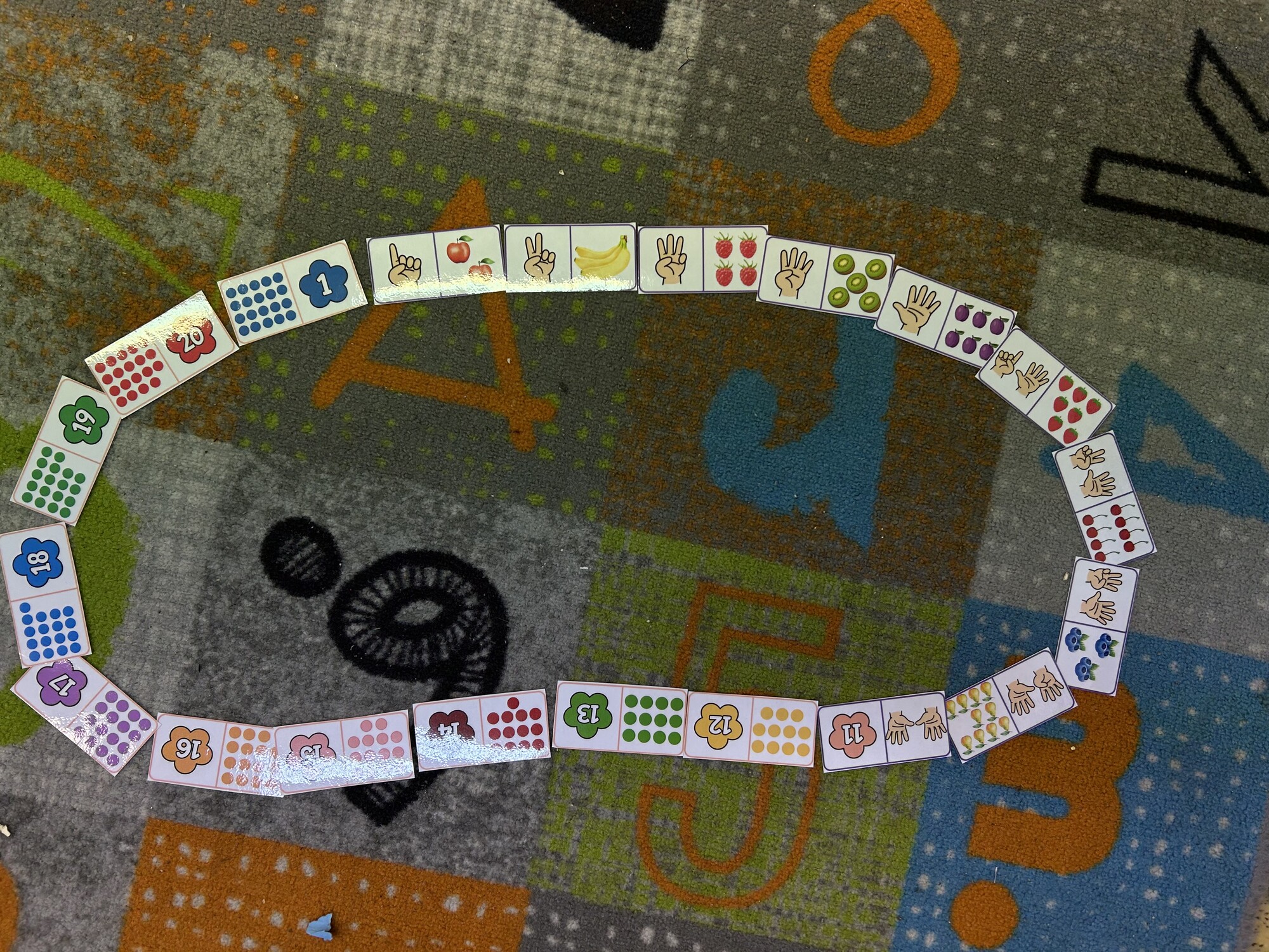 - Všechny dílky na sebe navazují, takže je možné je poskládat do jedné dlouhé řady domina, která se uzavírá do kruhu – poslední dílek navazuje na první a vzniká tak nekonečná smyčka.