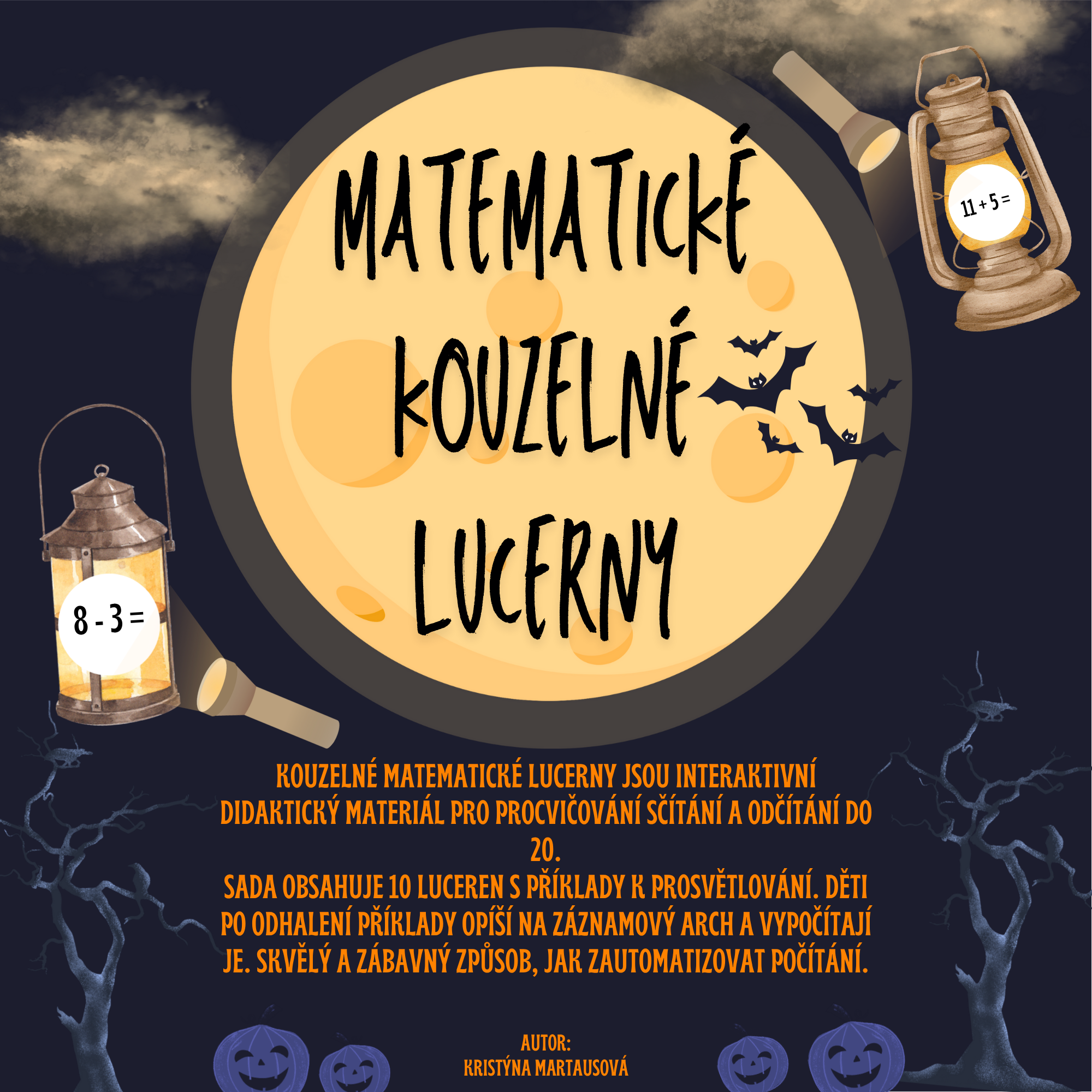- 10 Kouzelných luceren: Sada obsahuje 10 karet ve tvaru luceren, které v sobě skrývají matematické příklady. Jde o techniku prosvětlování – žáci lucernu přiloží k oknu nebo ke zdroji světla, čímž se jim zjeví skrytý příklad.