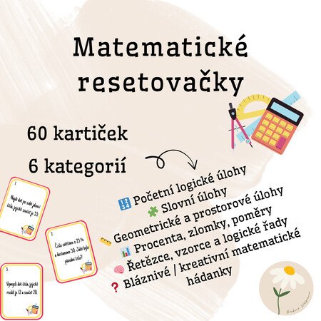 Tento soubor obsahuje 60 různorodých matematických úloh (6. - 7. ročník) zaměřených především na rozvoj logického myšlení, strategického uvažování a schopnosti hledat souvislosti. Úlohy nejsou klasické „počítací příklady“, ale vedou žáky k tomu, aby: