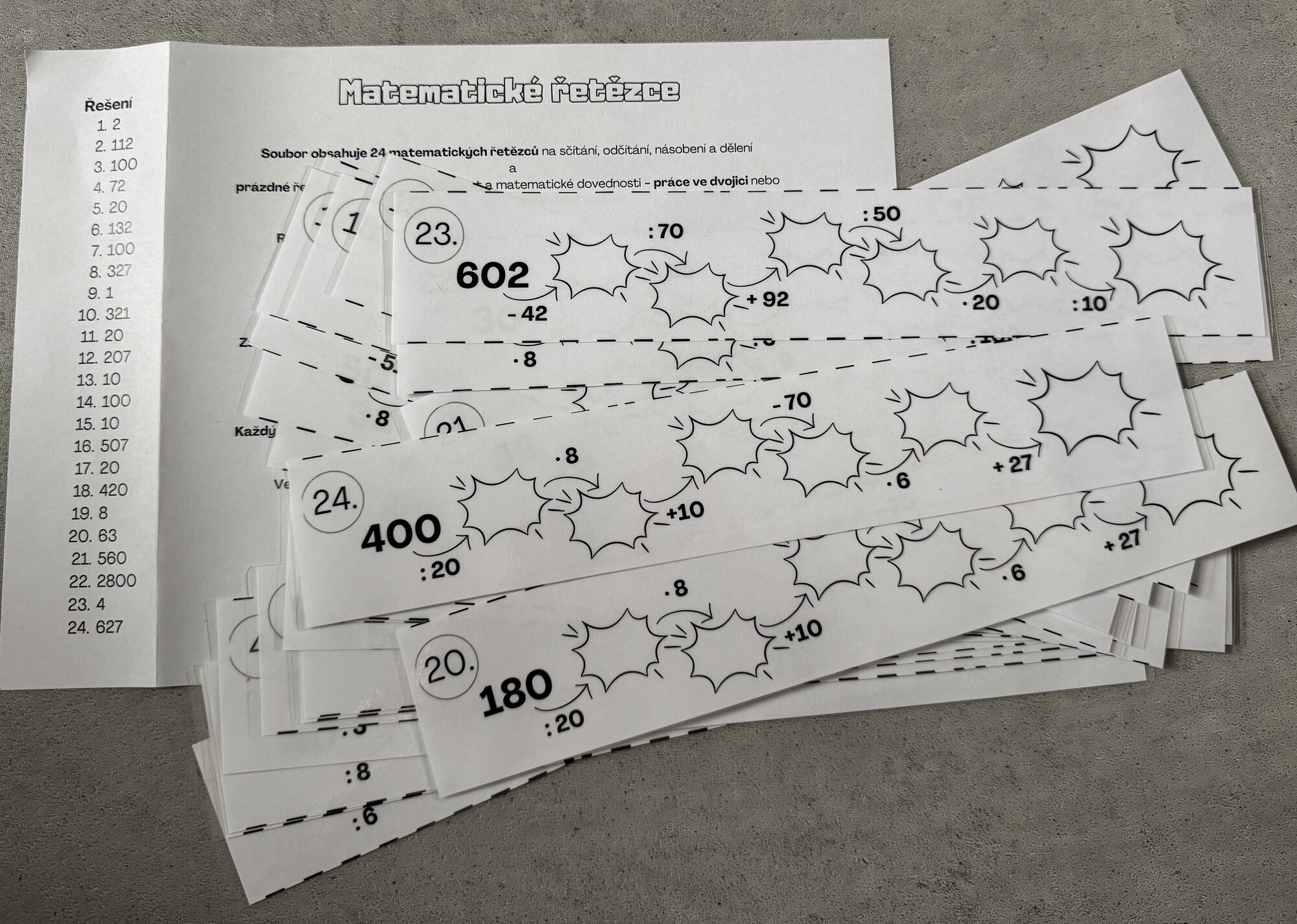 prázdné řetězce - žáci si posílí tvořivost a matematické dovednosti - práce ve dvojici nebo skupina vymyslí řetězec druhé skupině.