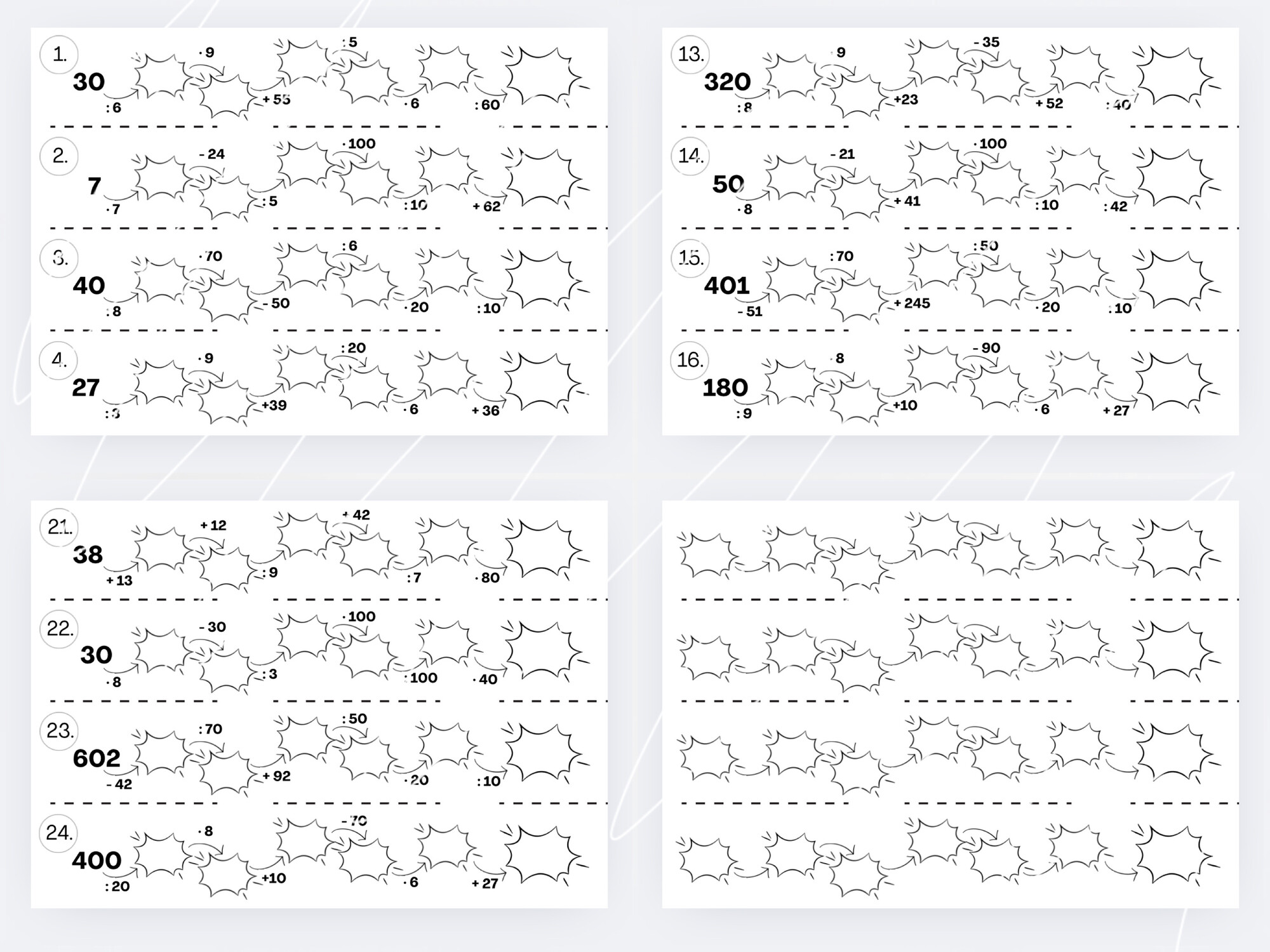 Soubor obsahuje 24 matematických řetězců na sčítání, odčítání, násobení a dělení
