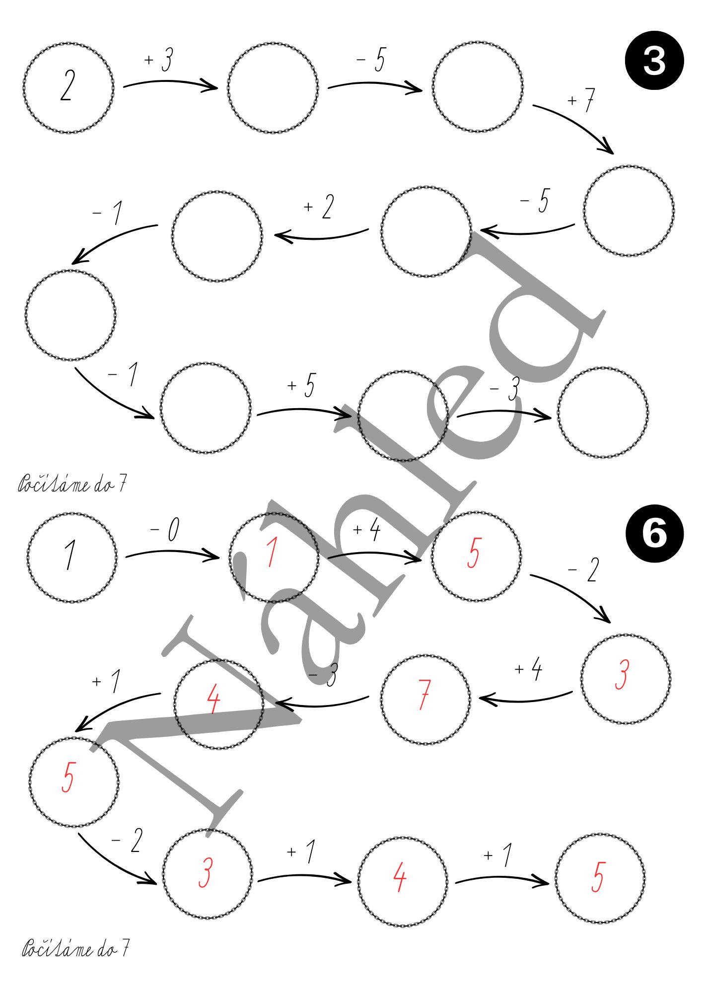 Soubor obsahuje celkem 10 různých řetězů na sčítání a odčítání v oboru 0-7.