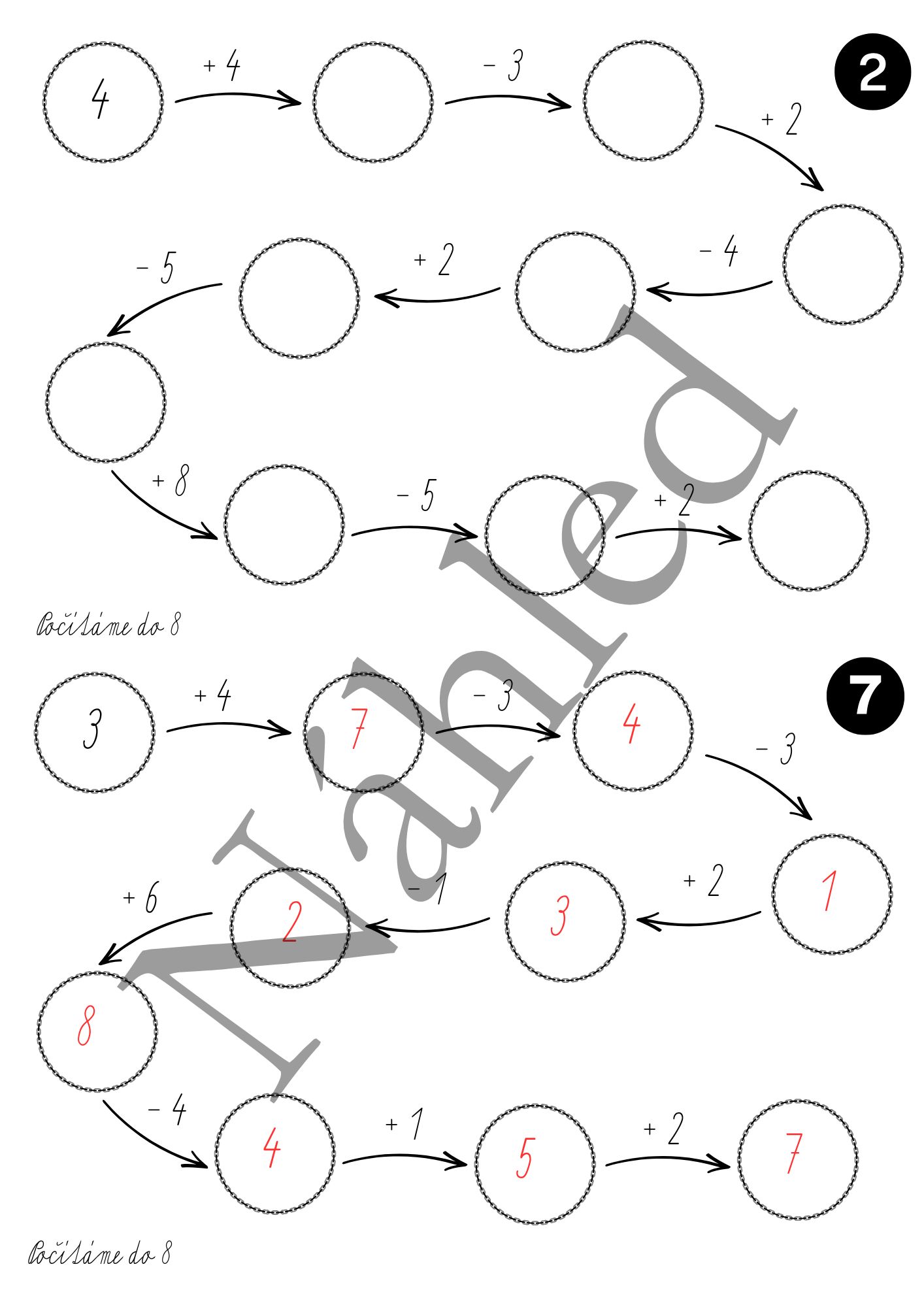 Soubor obsahuje celkem 10 různých řetězů na sčítání a odčítání v oboru 0-8.