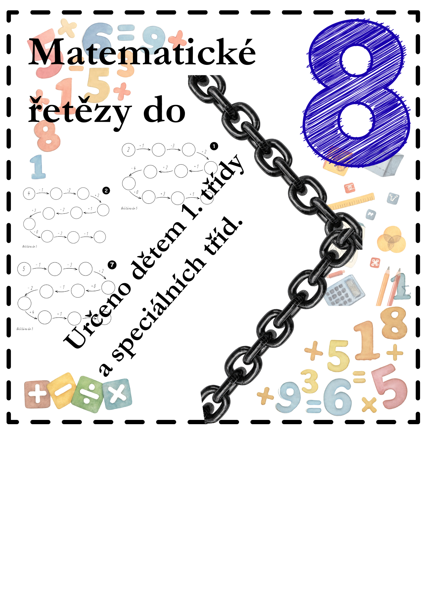 Materiál je určen žákům 1. ročníku ZŠ nebo dětem ze speciálních tříd a slouží k upevnění a procvičení učiva počítání do 8. Zaměřuje se na rozvoj základních početních dovedností – sčítání a odčítání v oboru do 8.