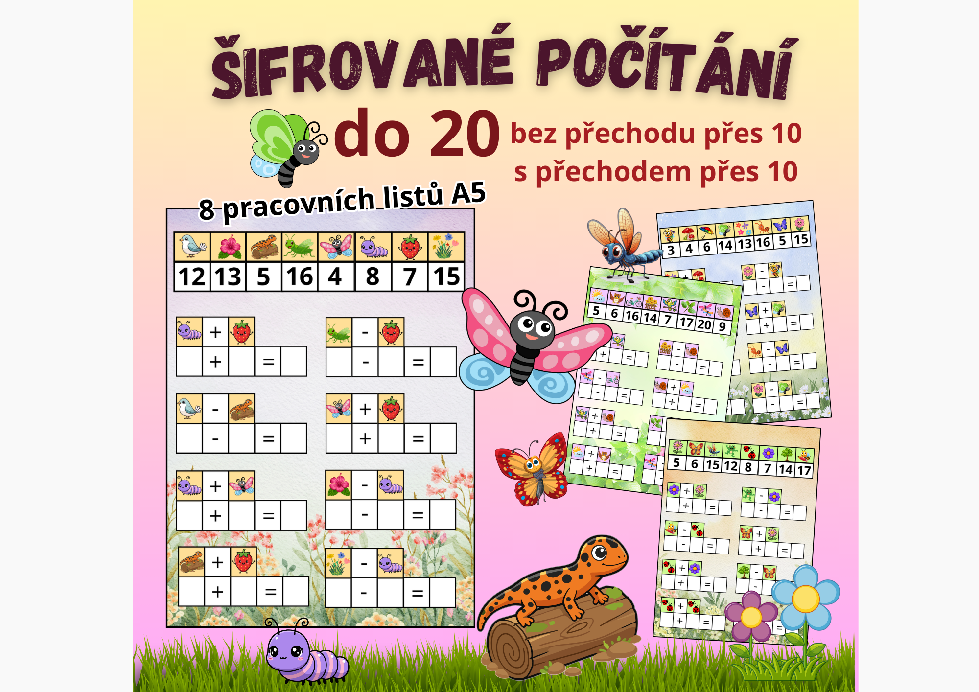 ◾ Soubor obsahuje 4 pracovní listy bez přechodu přes 10 a 4 pracovní listy s přechodem přes 10.