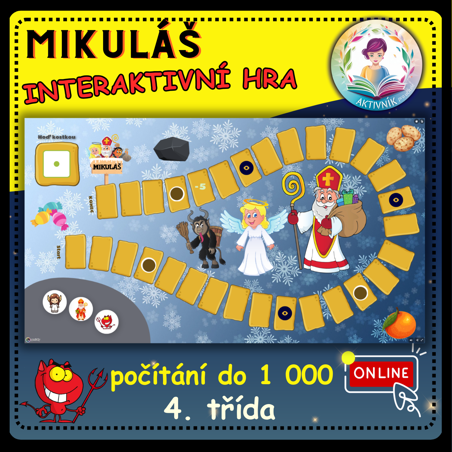 Pro interaktivní tabule (hraje celá třída) i tablety (dvojice/skupiny). Opakování pamětného počítání do 1 000 s přechodem zábavnou formou. Obsahuje řešení = okamžitá zpětná vazba. Najdete zde také pohybové chvilky a slovní úlohy. Hra je celá pouze online. Po dokončení hry se objeví překvapení ve formě pohádky.