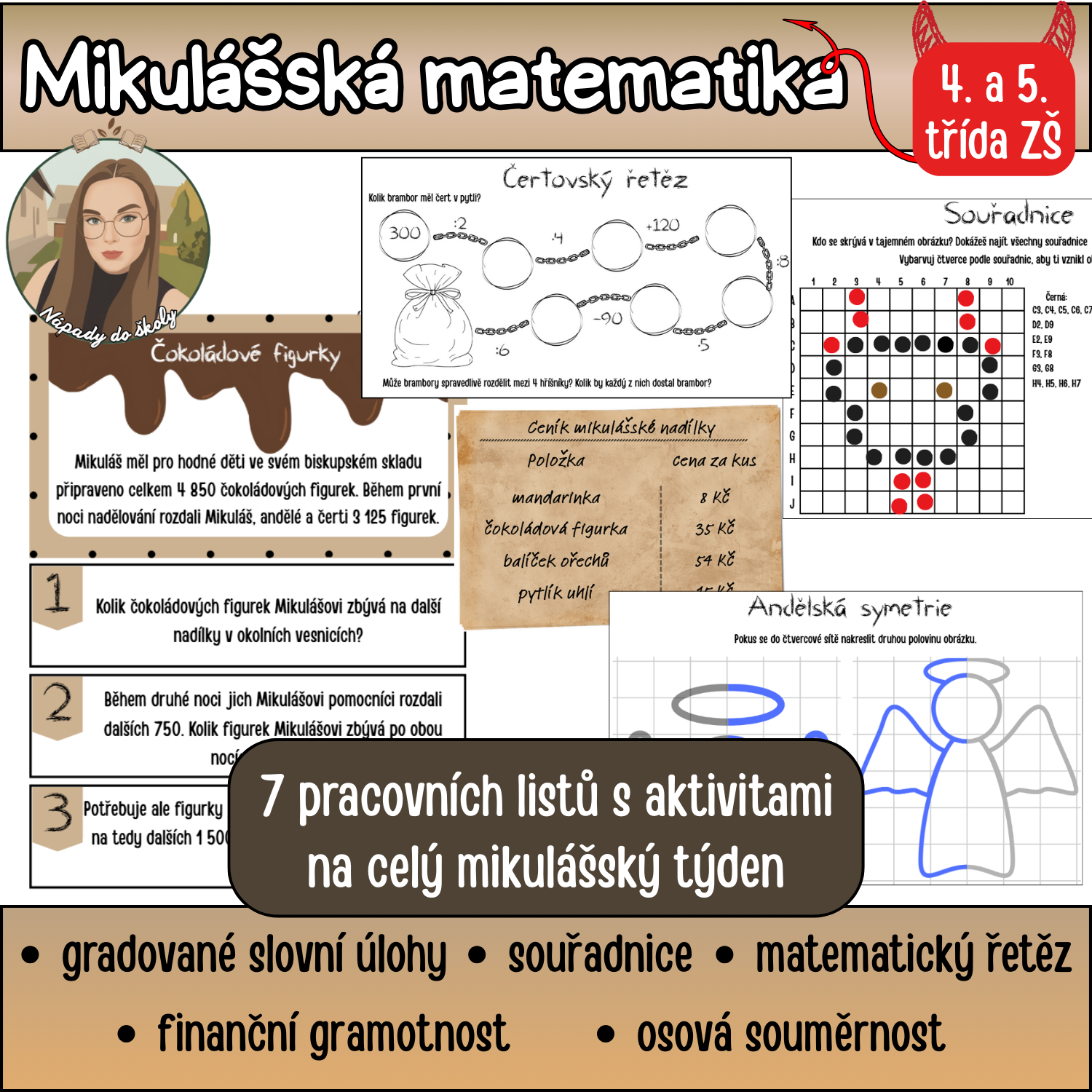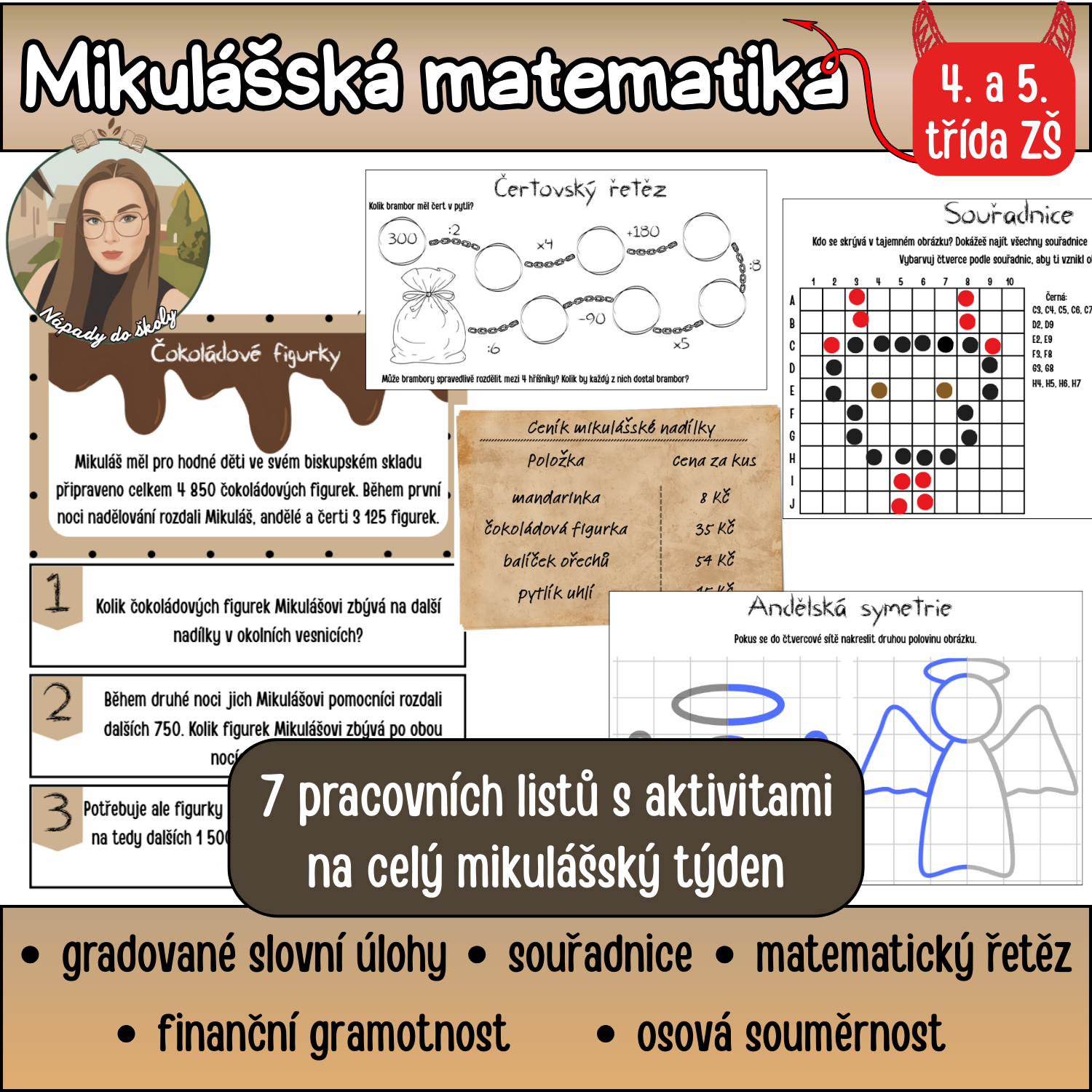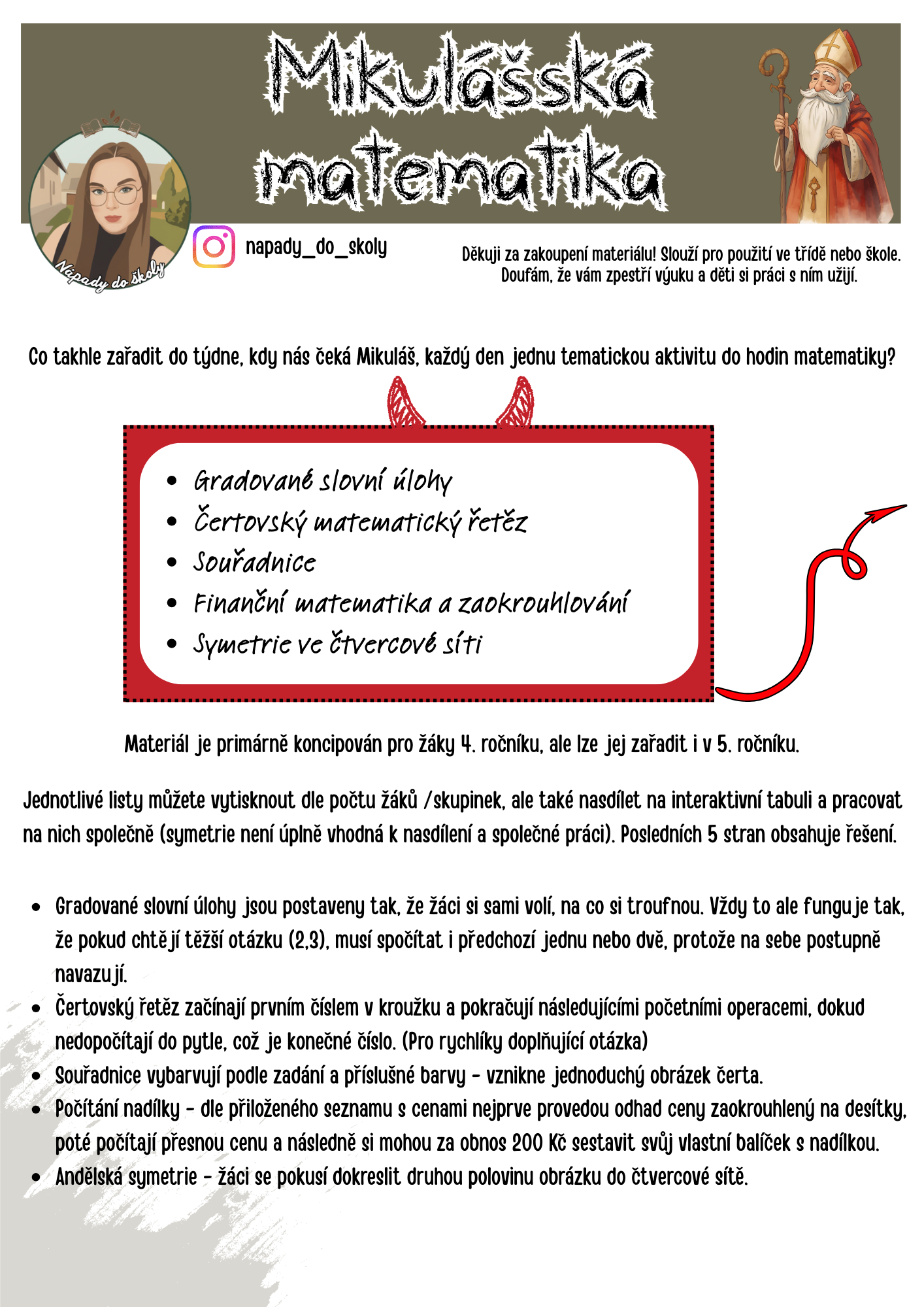 Připravte žáky na svátek sv. Mikuláše s uceleným balíčkem matematických aktivit.! Tento materiál přináší zábavnou formou látku z aritmetiky, geometrie, logiky a finanční gramotnosti.