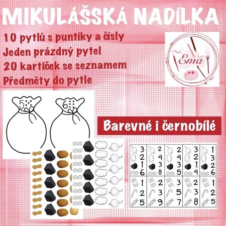 Předměty, které děti mohou vkládat do pytle jako nadílku