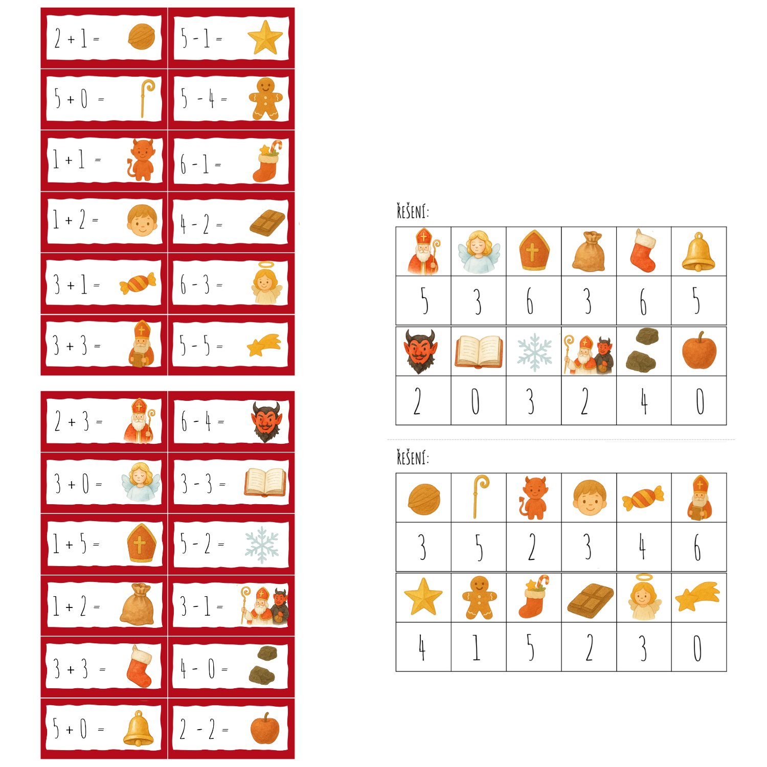 Jedná se o praktický a vizuálně poutavý materiál, který kombinuje procvičování aritmetiky s hrou, samostatnou kontrolou výsledků a tematickým designem pro mikulášské období.