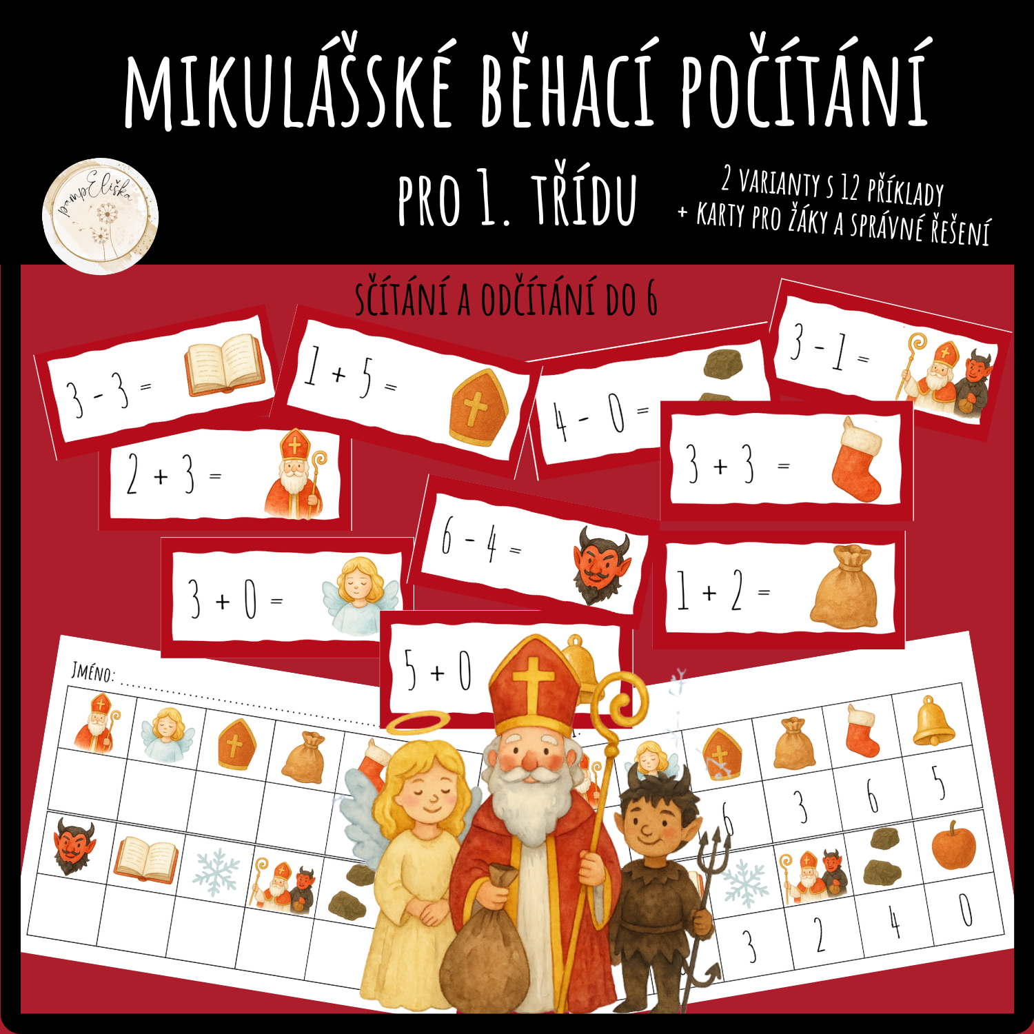 Výukový materiál je tematicky laděný do mikulášské atmosféry – děti se setkají s veselými ilustracemi Mikuláše, anděla, čerta, punčoch, perníčků, dárečků a cukrovinek. Vizuálně přitažlivé zpracování podporuje vánoční náladu a motivaci k učení.