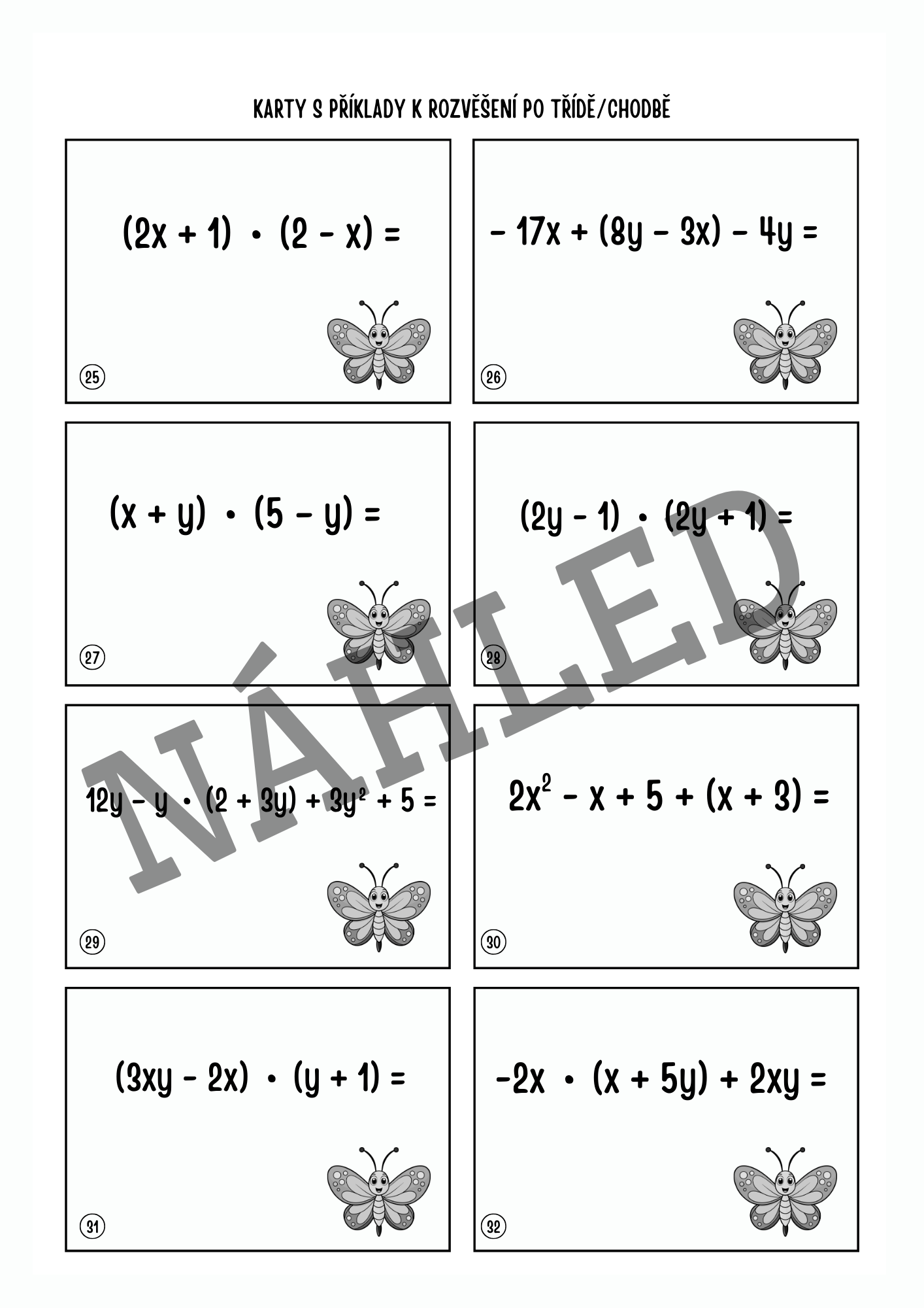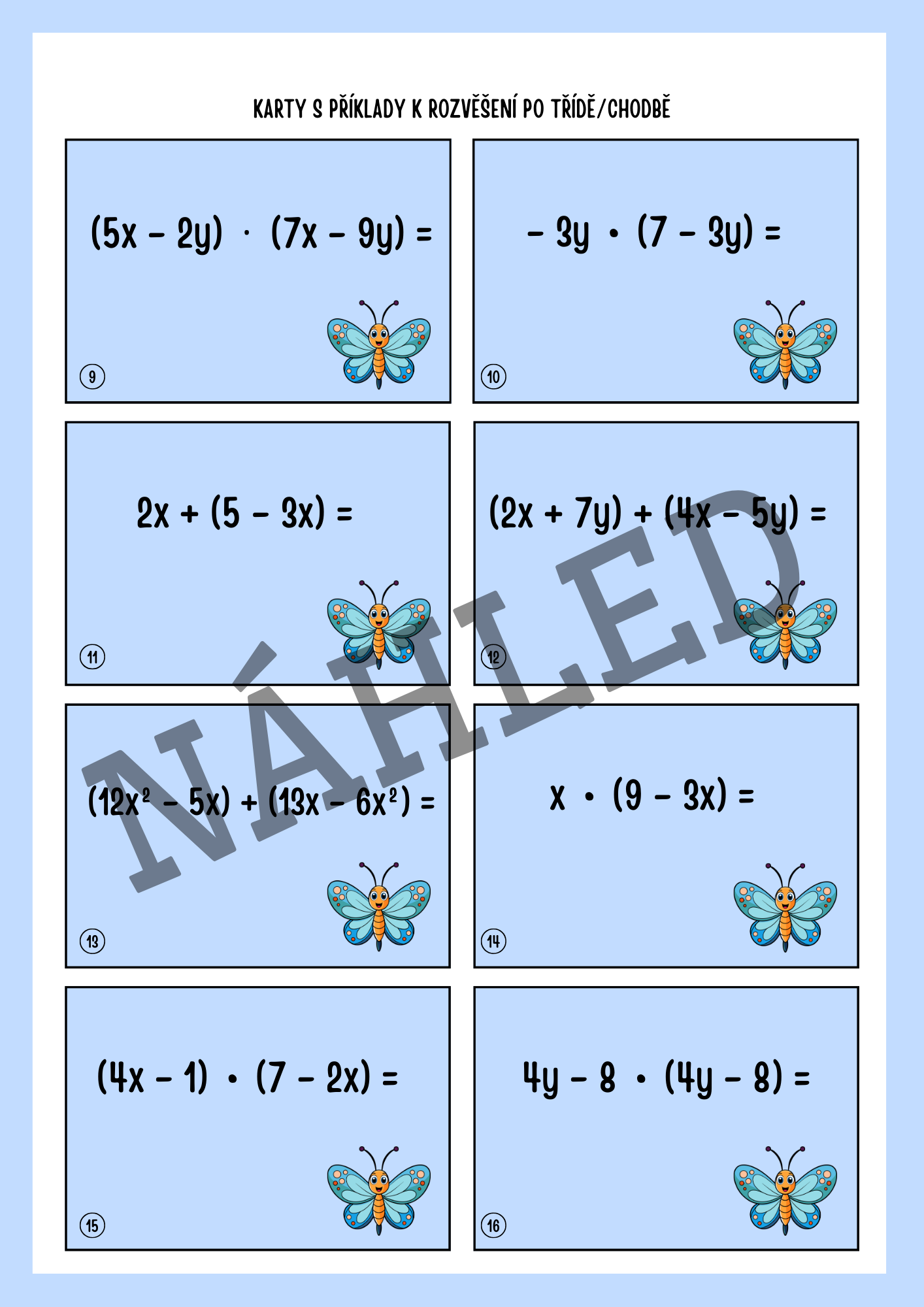 - 38 kartiček s matematickými příklady (k vytištění a rozmístění po třídě/chodbě)