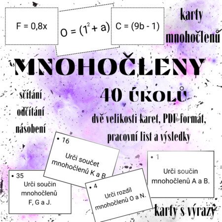 Výrazy - karty s úkoly (početní operace s mnohočleny)