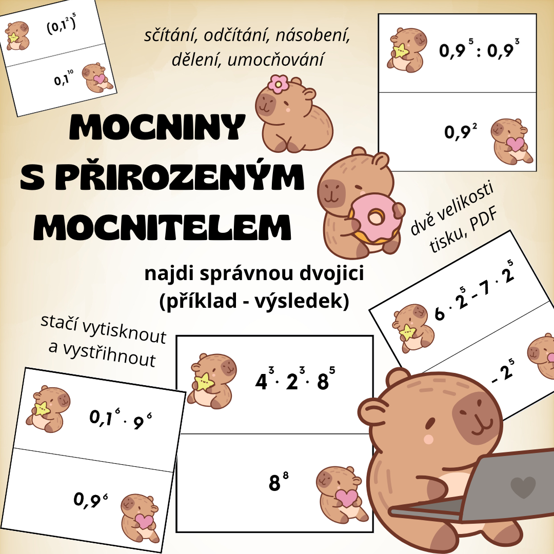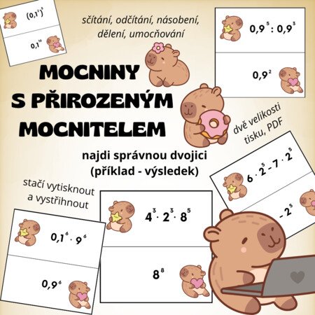 - procvičení mocnin s přirozeným mocnitelem - sčítání a odčítání, násobení a dělení, umocňování