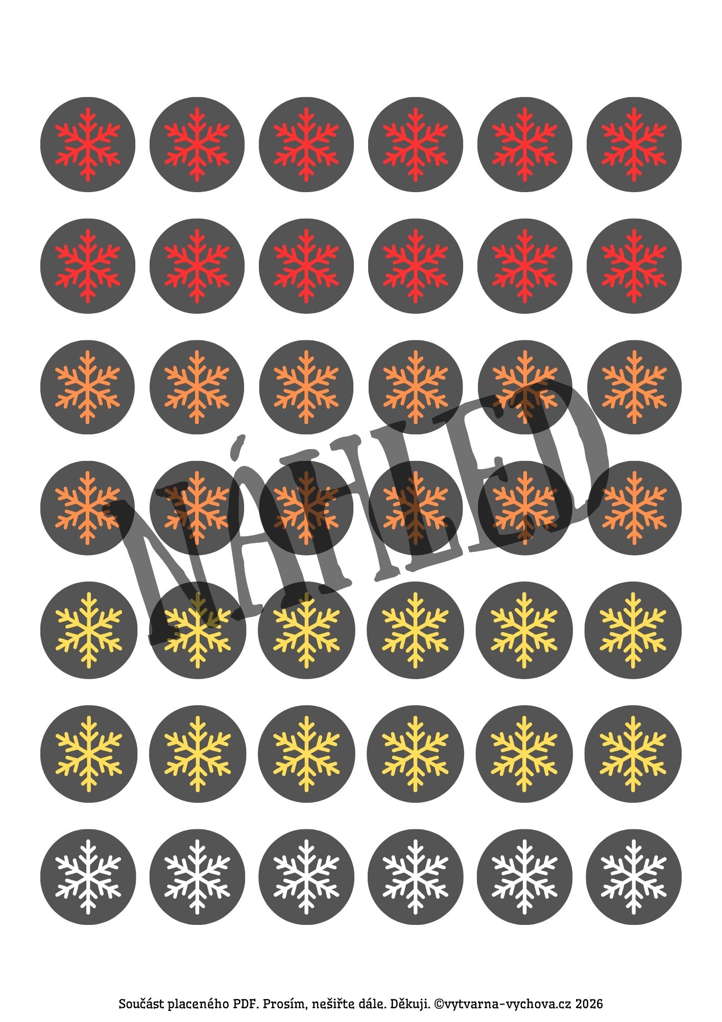 - 72 barevných vloček v kruhu (vždy 12 ks od 6 barev).