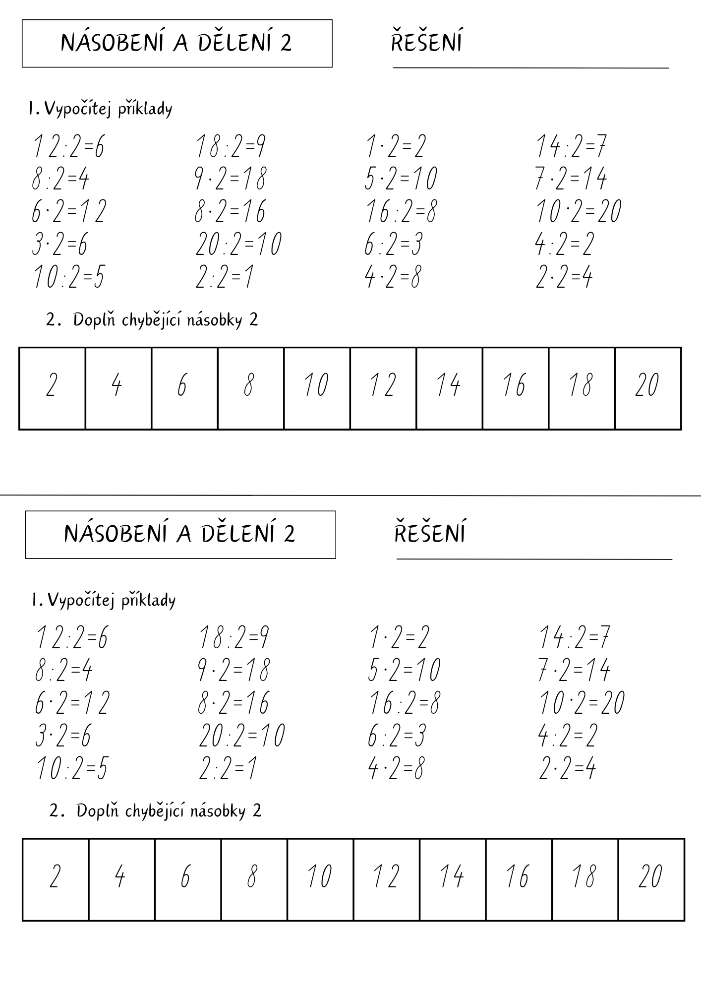 - běhačku - celkem 40 příkladů k procvičení