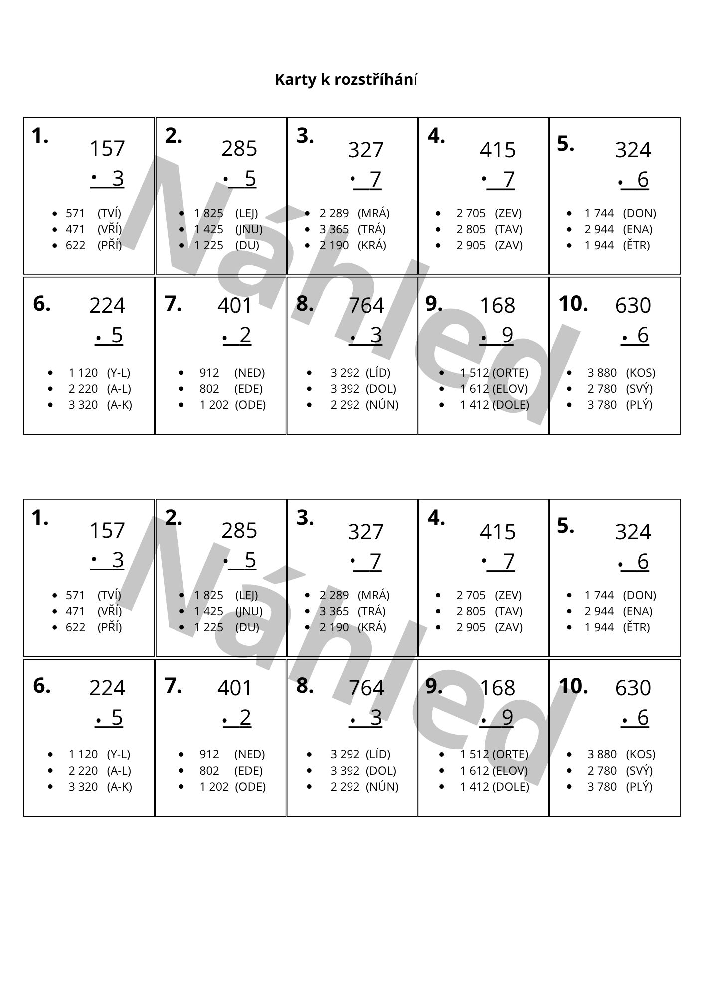 - Vytiskneme karty ze str. 2, počet kopií přizpůsobíme počtu žáků. Pro třídu 20 žáků doporučuji vytisknout alespoň dvakrát, aby si je děti mohly střídat bez delších prodlev. Karty nastříháme.