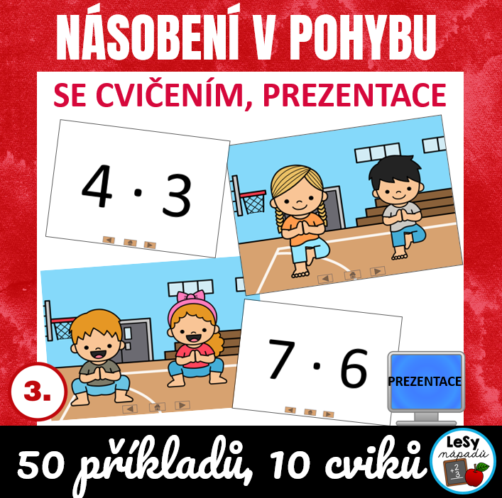 •prezentace s celkem 50 slidy na formátu A4 s příklady na násobení v oboru 0-10, na každém slidu je 1 příklad