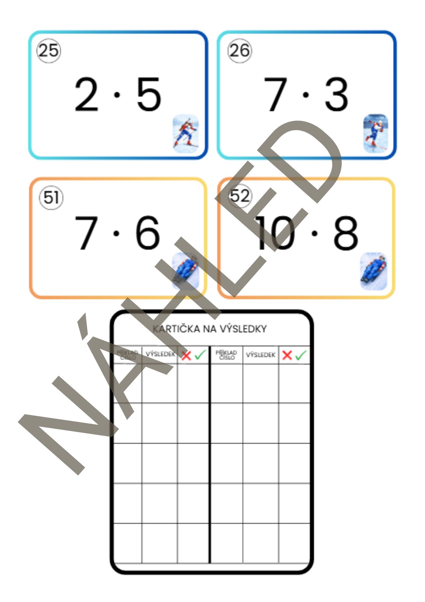 🎲 NÁSOBILKA HRAVĚ - KARTIČKY (ZIMNÍ SPORTY) ⛷️