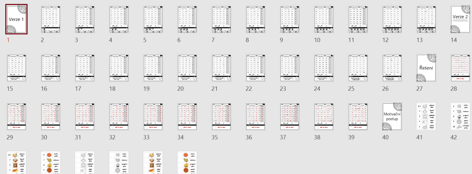 - V obou verzích je 9 pracovních listů (Každý je zaměřený na jinou násobilku + obsahuje sloupec pro opakování předchozí.)