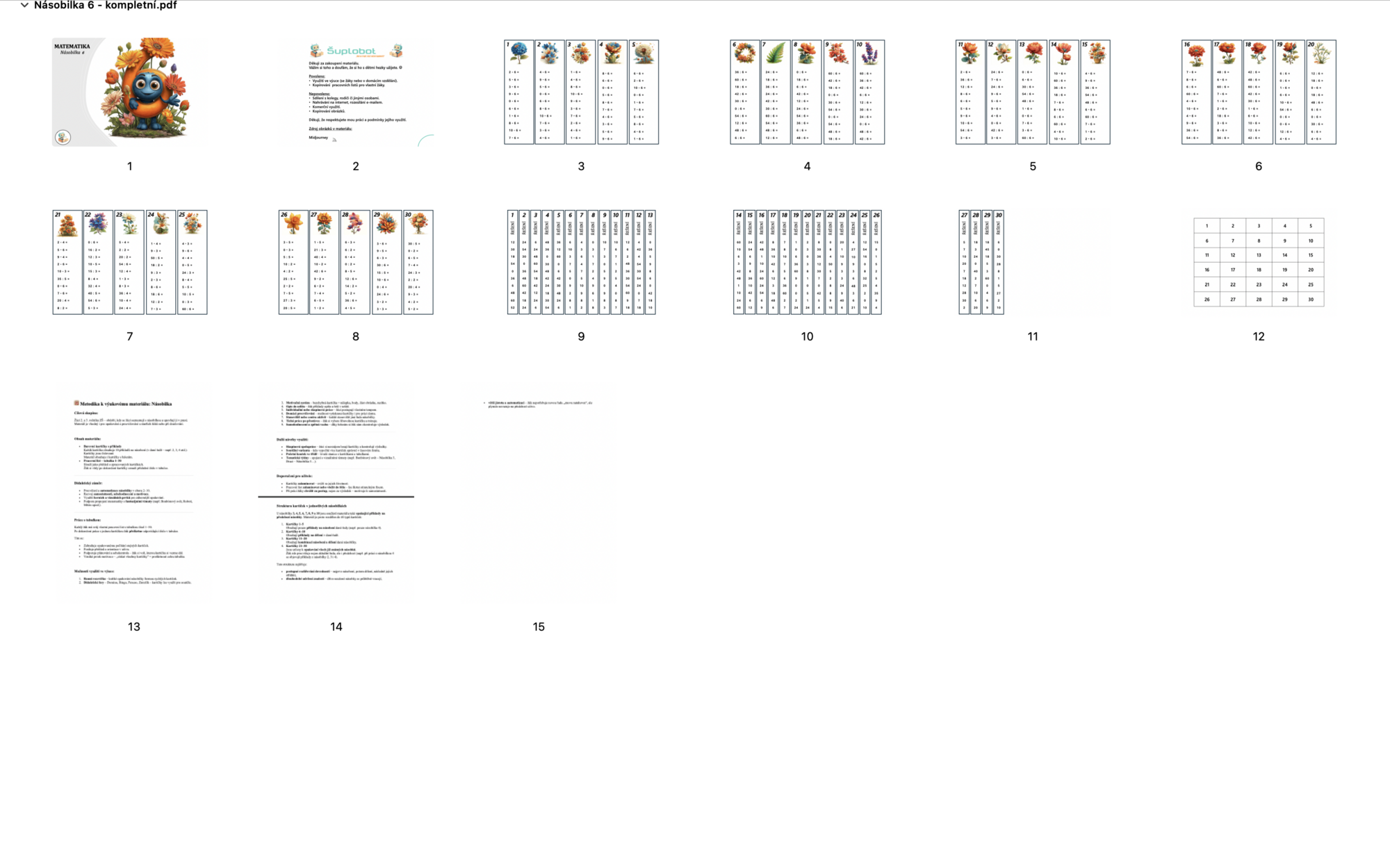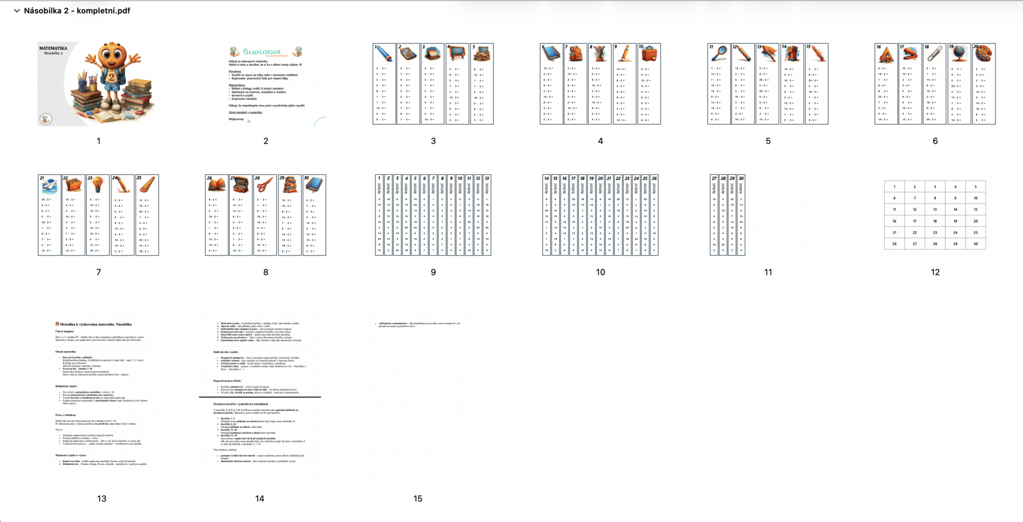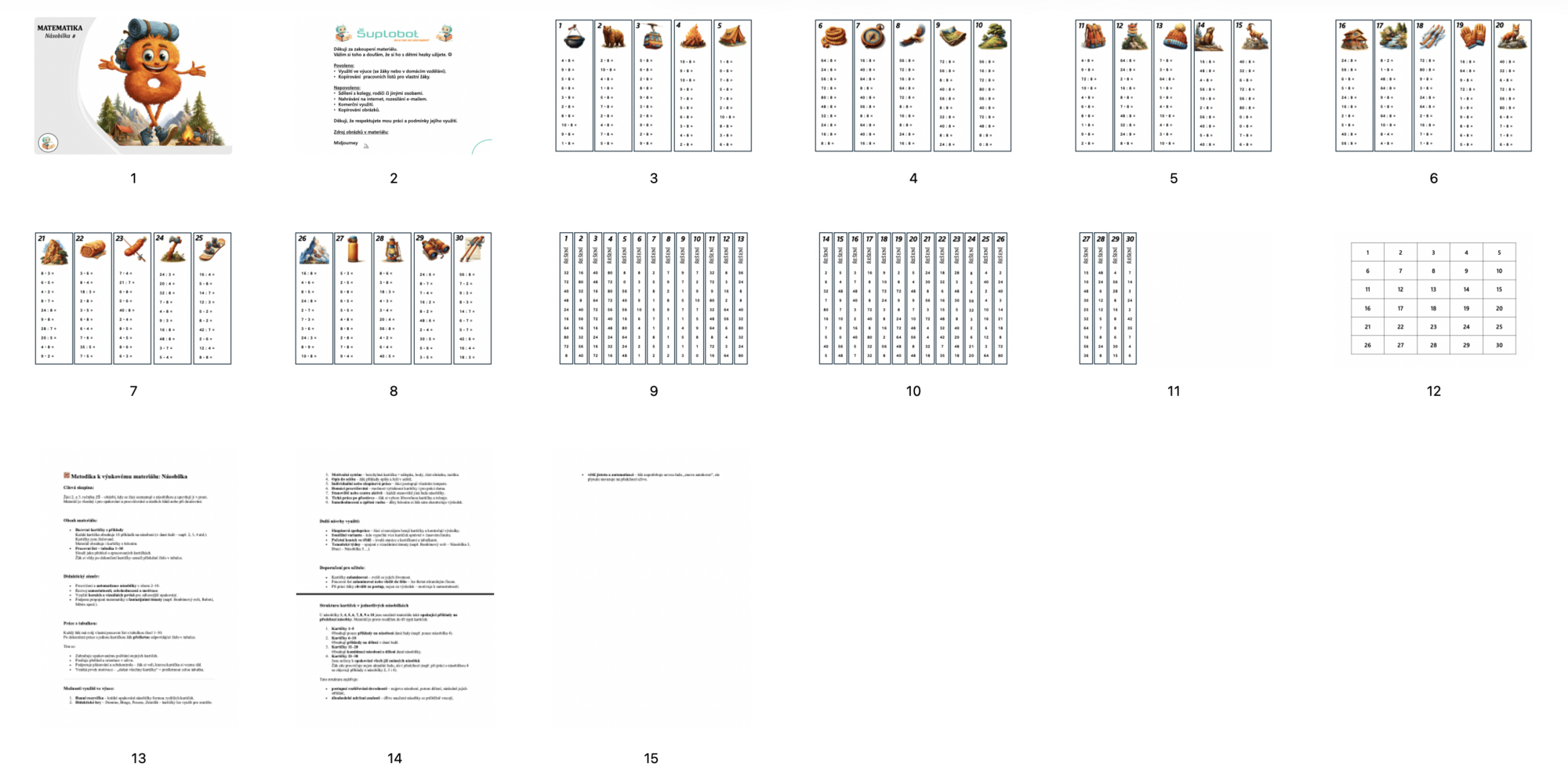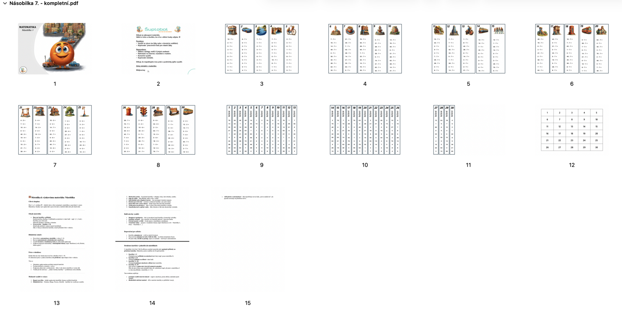 Součástí jsou také metodické listy pro učitele a pracovní tabulky, do kterých si žáci zaznamenávají již vypočítané kartičky. Díky tomu mají přehled o svém postupu, mohou si plánovat práci a motivovat se k dokončení celé série.