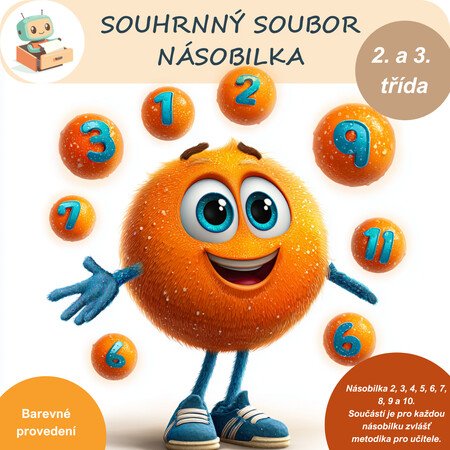 Tento souhrnný výukový balíček Násobilka 2–10 nabízí kompletní sadu materiálů pro systematické procvičování násobení a dělení. Obsahuje 9 ucelených sad, každou s 30 kartičkami po 10 příkladech, které umožňují žákům postupně upevňovat násobilku 2 až 10.