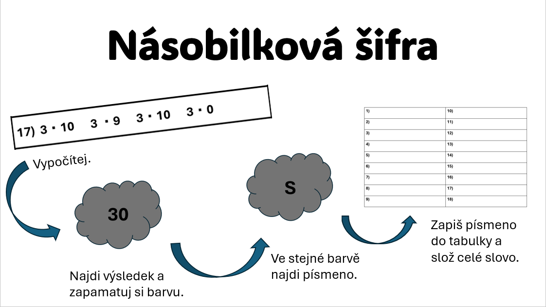 • Materiál slouží k procvičení násobení hravou formou –šifry.