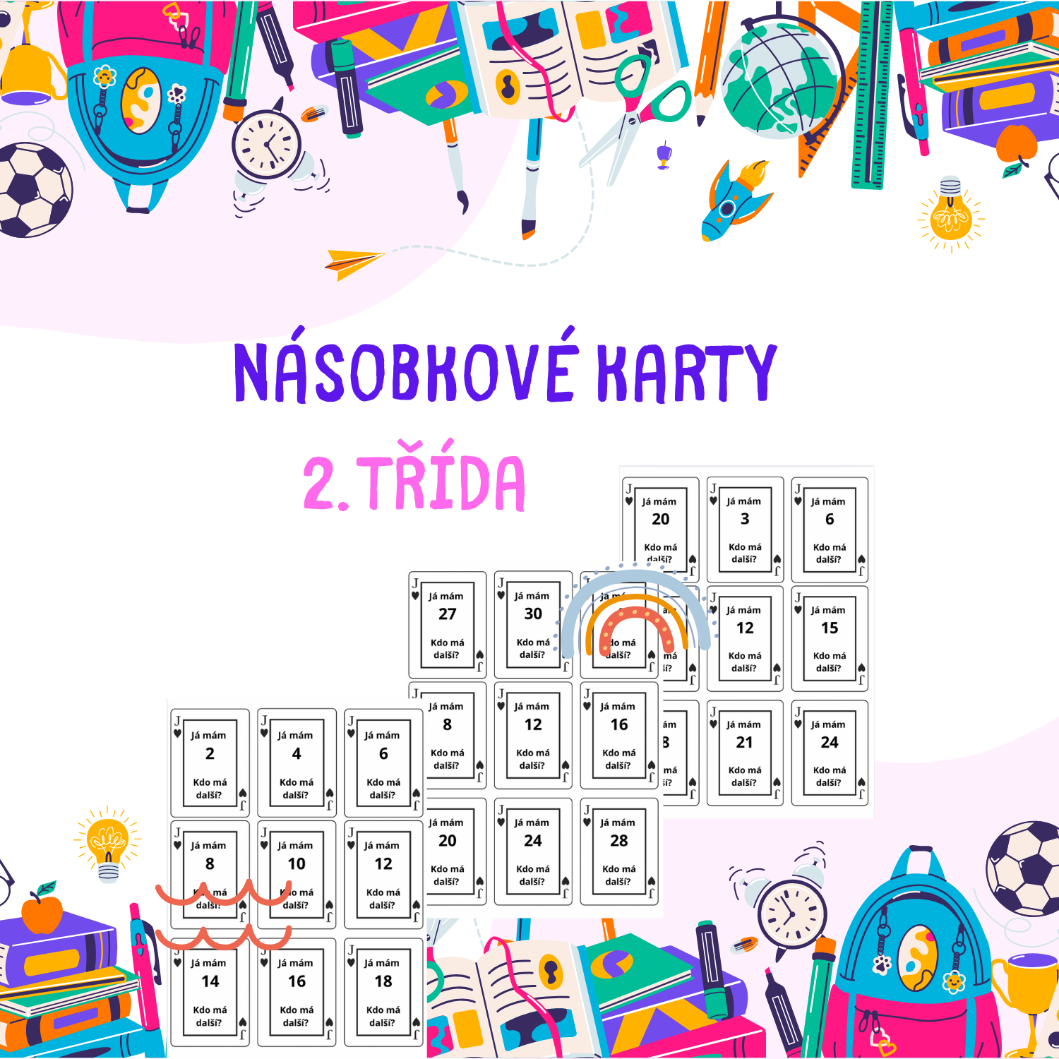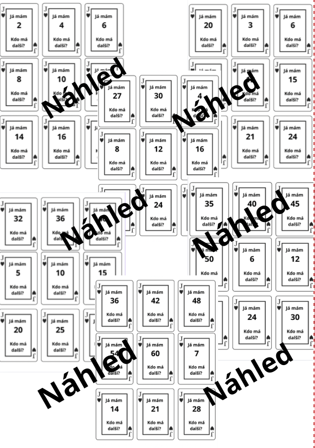 Materiál obsahuje všechny řady násobků malé násobilky. Karty fungují na principu KDO MÁ, JÁ MÁM.