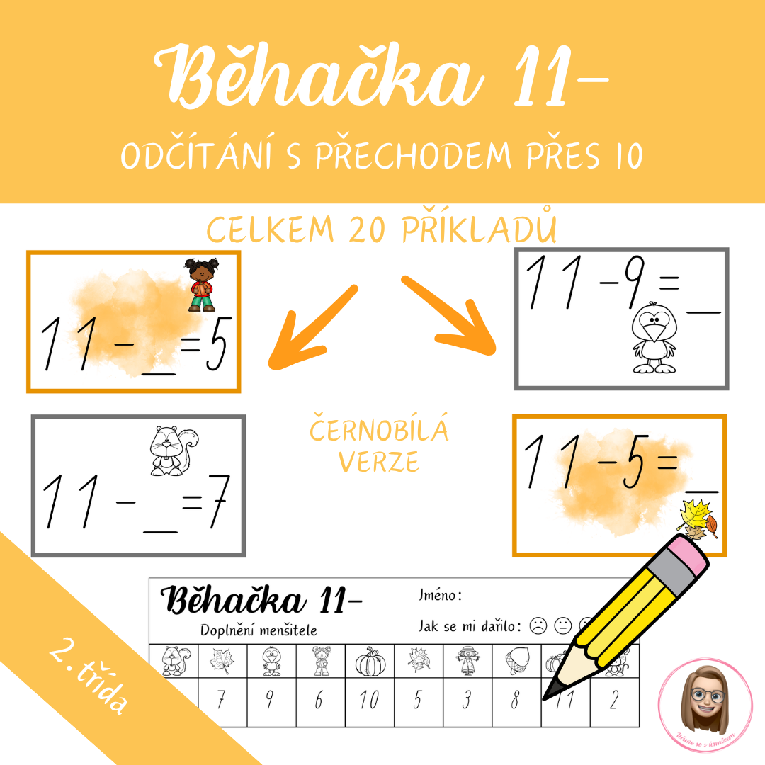 Hravá běhačka pro prvňáky a druháky, která procvičí odčítání s přechodem přes desítku (typ 11−). Děti se při aktivitě nejen naučí počítat, ale zároveň se proběhnou a užijí si spoustu zábavy.