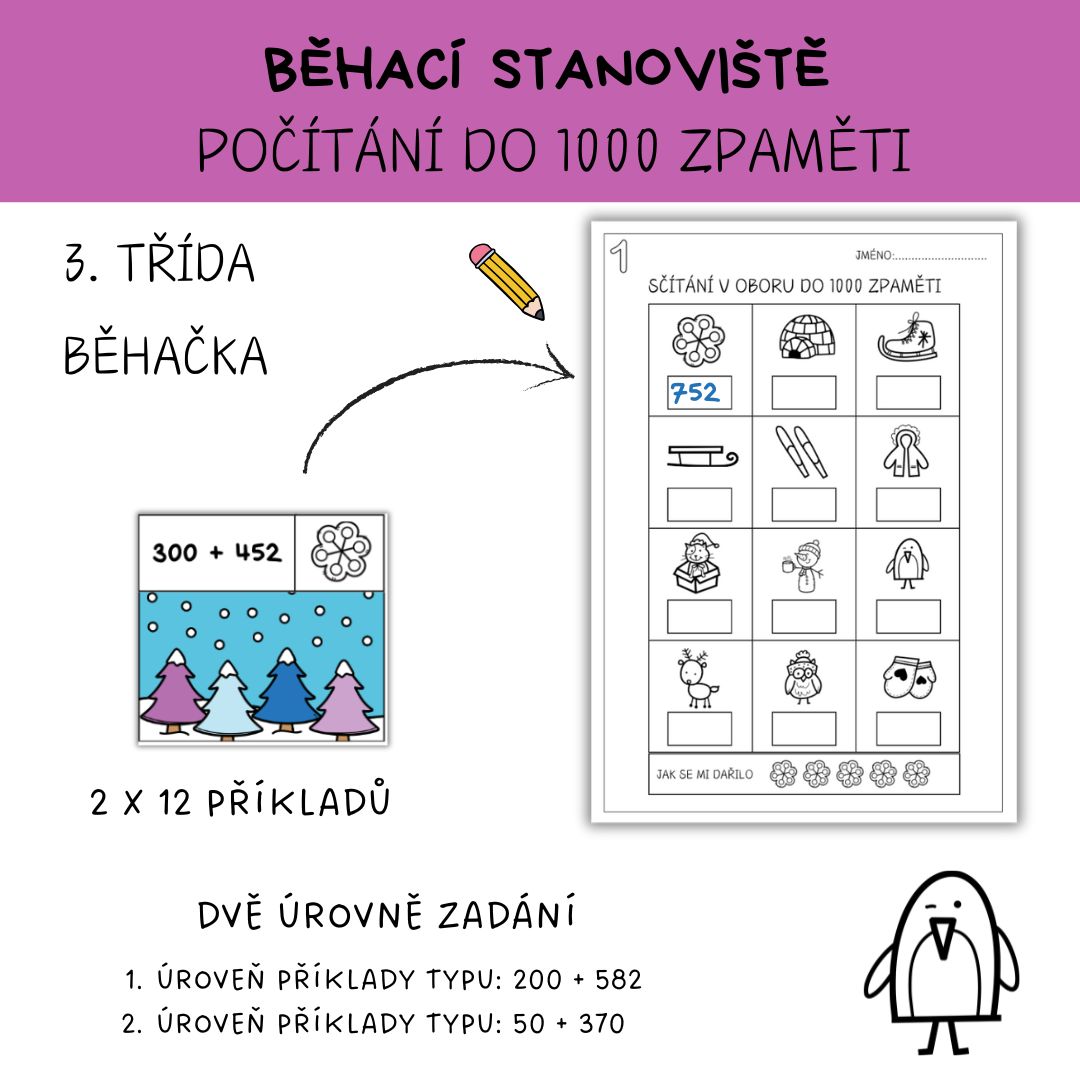 Sčítání čísel v oboru do 1000 zpaměti - BĚHAČKA zima