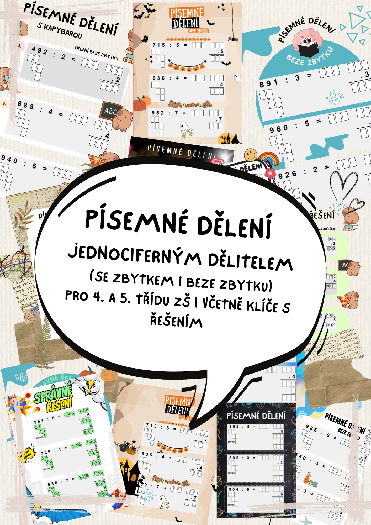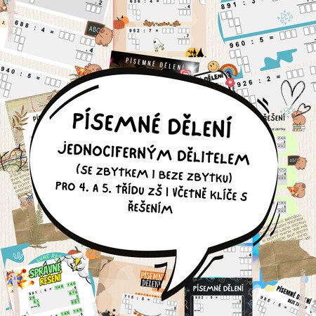 - 10 pracovních listů na dělení se zbytkem i beze zbytku.
