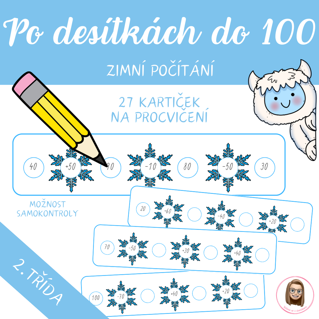 Početní řetězce po desítkách do 100 jsou ideální pomůckou pro 2. ročník. Děti postupně doplňují výsledky a učí se orientovat v delším příkladu, kde na sebe výpočty navazují jako řetěz. Materiál obsahuje 27 kartiček k procvičení a 27 kartiček k samokontrole, takže jej lze skvěle využít při samostatné práci, na začátku hodiny, v centrech aktivit i jako trénink pro rychlíky.