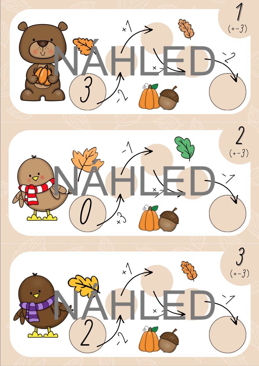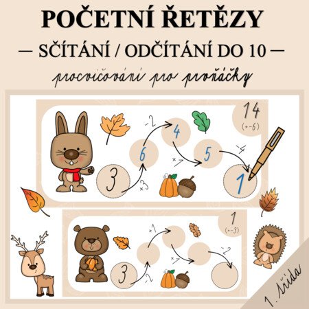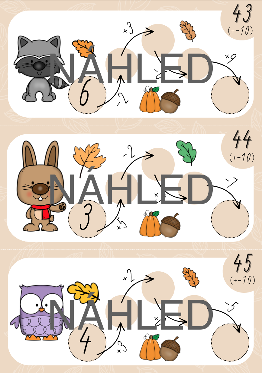 - Každý obor rozdělen zvlášť. Začínáme tedy kartičkami +- do 3, končíme +- do 10. Můžete tedy zalaminovat pouze ty obory, které zrovna probíráte.