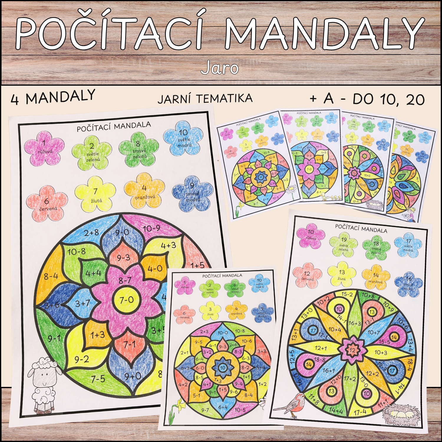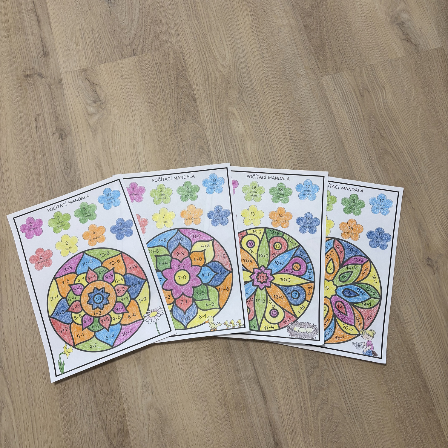 Materiál obsahuje 4 počítací mandaly s jarní tematikou, při kterých si žáci procvičí sčítání a odčítání do 10 a sčítání a odčítání do 20.