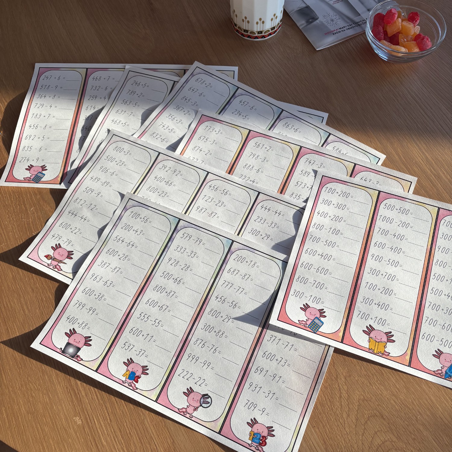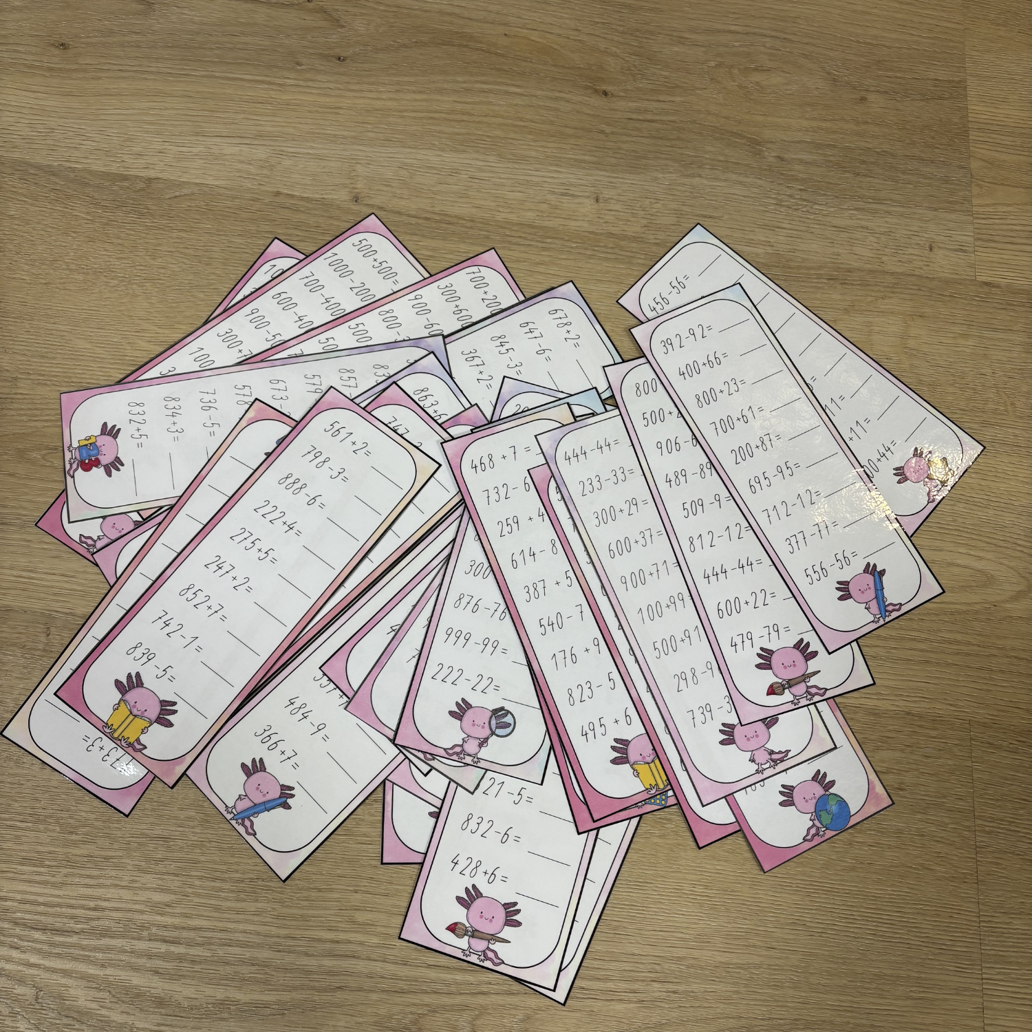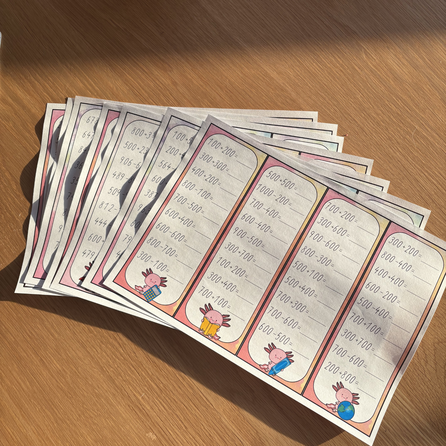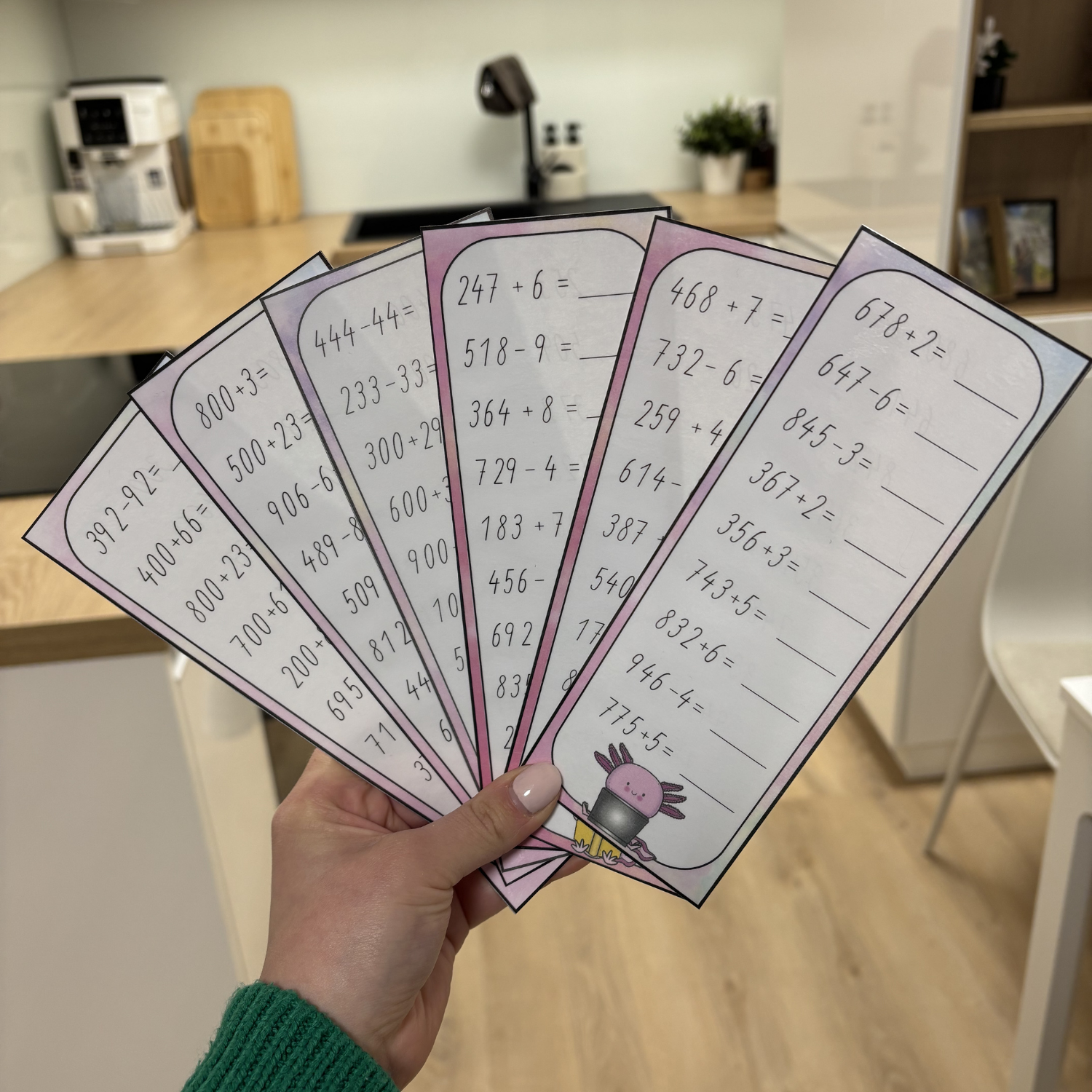 Materiál obsahuje 28 karet zaměřených na procvičování počítání do 1000 bez přechodu přes základ 100. Karty jsou gradované, postupně se zvyšuje jejich obtížnost, a žáci tak mohou přirozeně navazovat na již zvládnuté učivo a posouvat se dále.