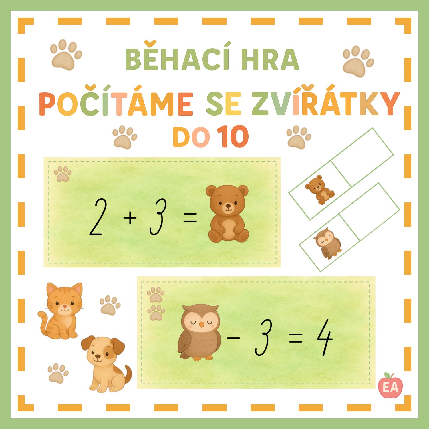 Běhací pomůcka dětem pomáhá procvičit si sčítání a odčítání v oboru do 10. Děti počítají příklady a doplňují chybějící číslo do pracovního listu. Pomůcka má dvě úrovně obtížnosti.